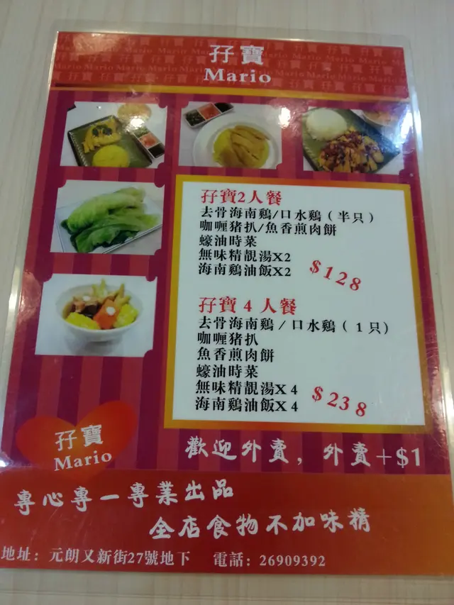 孖寶去骨海南雞 (又新街) (元朗) 网址: https://s.openrice.com/QrLS02zI0W0 地址: 香港元朗又新街27號地下1號舖 电话: +852 26909392