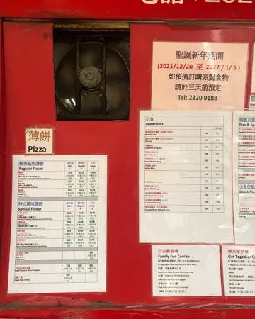 第一次去过果到,发现有间全红色嘅舖头,剩系得外卖,但有几多人等紧,所以就一齐去试吓。佢嘅薄饼都系即叫即整,所以叫完一定要等如果好赶,就可能要下次先。最后同朋友买咗一个薄饼两份食,佢嘅餐牌都有其他小食配搭,但我哋就冇叫。有得Order 净薄饼或者薄饼套餐单人或者一班人食都可以