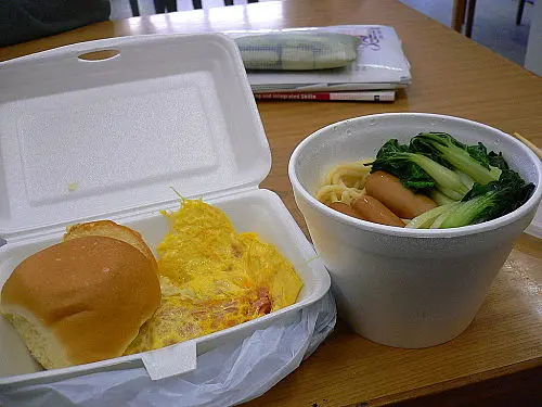 這次選的天天常餐亦是$15 包括牛油餐包平平無其的餐包塗上牛油後生色不少 如果是熱的就更好了火腿奄列驟眼看 蛋不會炒得過火 還保留了少許蛋汁 正合我意揭開一看 不得了 原來內藏不少蛋汁 真的令我有點驚喜正當我滿心期待 一吃 喜悅全消 怎麼這麼冷 連微暖也談不上真的很失望 但付了錢 沒有不吃的理由 只好把它吃下去其實味道還是可以的 只是真的很冰冷............麵則選擇了意粉 餸就要了時菜和芝士腸味道不過不失吧 至少是暖的$15 價錢相宜 不能強求甚麼 但真的有點失望....................…查看更多