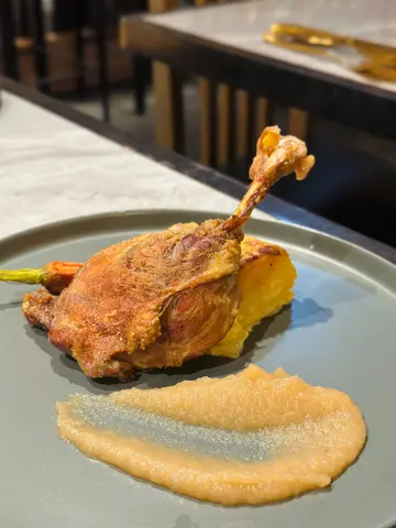 同男朋友去左位于兰桂坊主打法日Fusion菜嘅餐厅,听闻主厨拥有多年法餐经验, 想将法国菜元素融入日菜,当中tasting menu 系主厨精心设计,采用法式技术呈现法日美馔体验😍Foie Gras Terrine 选用新鲜鹅肝,经过多重工序后,做到口感绵滑又浓郁,再配上云吞皮同自家制果酱,口感丰富之余超有惊喜🤩Tomato Salad法国蕃茄味道更鲜甜😋再配搭芥末、酒及芝麻酱中和左蕃茄嘅酸度,令番茄嘅味道更上一层🤩Beef Tartee • Prawn Tartee 有🐮和牛他他同🦐大虾他他,和牛他他有鹌鹑蛋黄融为一体,食落好滑之余仲有淡淡嘅蛋香,再配埋多士,整个口感更有层次👍🏼另一款以虾为主,估唔到虾肉咁爽口又鲜甜,再夹埋他他酱超正,食都停唔到口😆必试Cordon Bleu chicken roll鸡卷外脆内嫩,好juicy💦一切开芝士马上流出黎,再配上秘制酱汁简直一流😍另外千层奶油焗薯仔都好正,一层一层咁叠住,仲要每层都加左cream再去焗,睇见都流哂口水🤤Grill seabass 鲈鱼外脆内嫩,当中鱼肉夹杂住柠檬等独特香料嘅味道,食落鲜甜得黎好特别😎Ox tongue牛舌厚得黎好软腍, 而且牛味十足,正😋Créme brûlée充满香浓嘅蛋香味之余仲有云呢拿香气,食落好滑好绵,十分推介👍🏻…查看更多