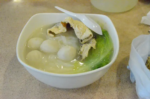 何謂古法 bilow等级42010-01-3144 浏览 关注 29/1(五) 2pm跟不停嚷著要吃爽腩的阿梁進入街市上的熟食中心獵食.尋爽腩不果.轉移目標到了第三站的"學利".點了墨丸古法魚蛋水餃米$26及灼芥蘭$6.墨丸古法魚蛋水餃米--近似片頭的質感,彈度及魚味份外高!墨丸加了馬碲粒,添層次,鮮度也不弱;相對地水餃及米粉變得庸俗起來...灼芥蘭--走油加腩汁的芥蘭灼得過時,欠爽勁!翻查學利的歷史,得知其古法魚蛋的做法如下:用「硬漿」打起,再用古法炸魚蛋方法,令肉汁被鎖住,入口有嚼勁又香,跟魚片頭味道有過之而無不及.同意!…查看更多以上食记乃用户个人意见 , 并不代表OpenRice之观点。赞好分享何謂古法 學利魚蛋 https://s.openrice.com/QrLT0Bt4V00检举 张贴 评分3味道2环境4服务3卫生3抵食用餐日期2010-01-29人均消费$25 (午餐)