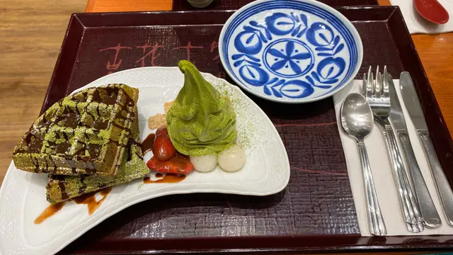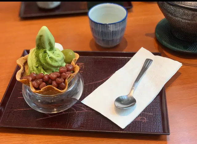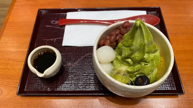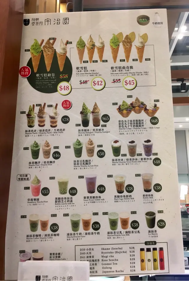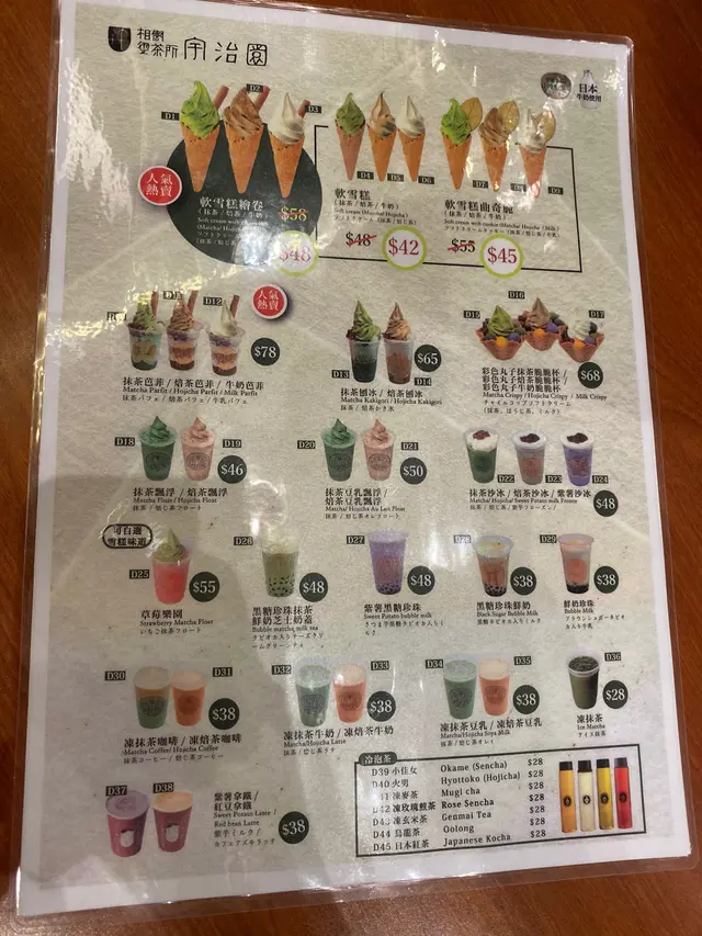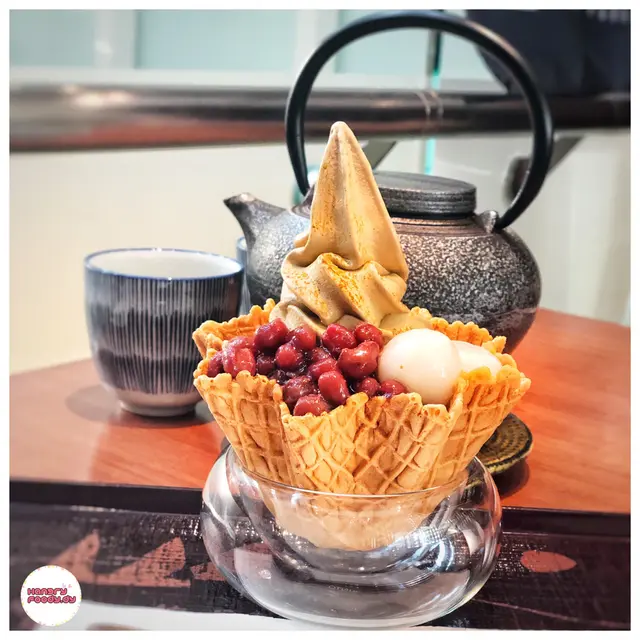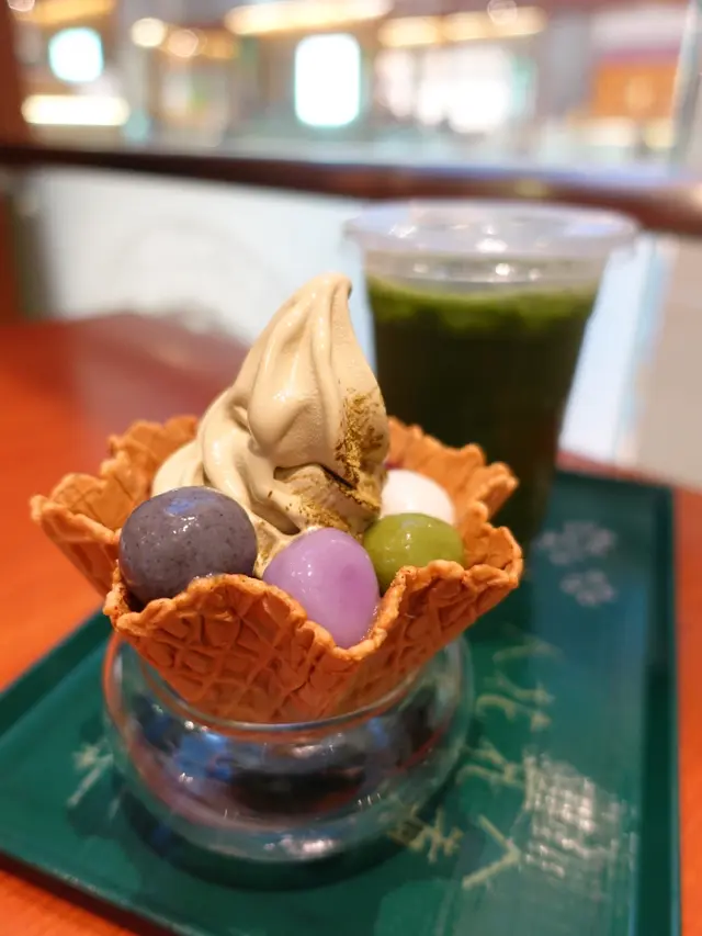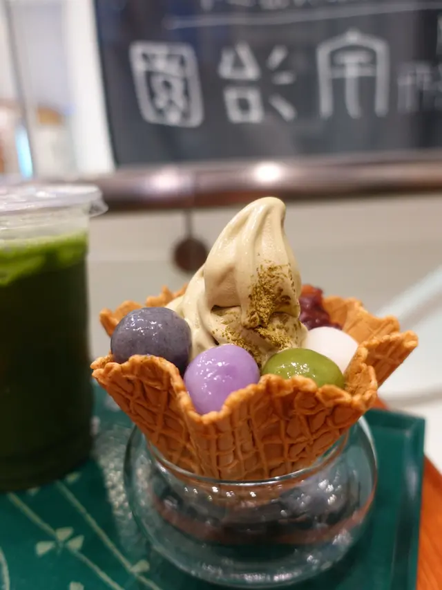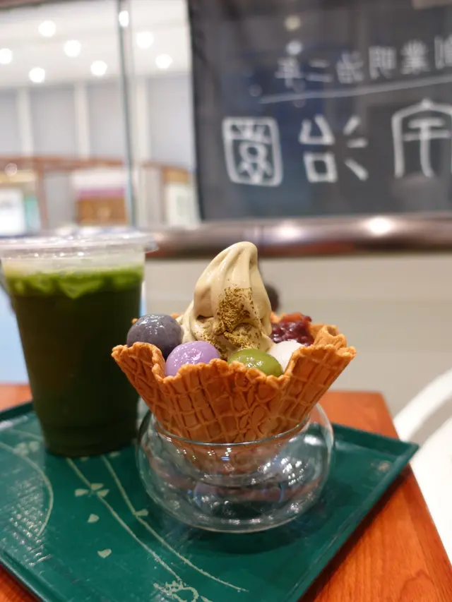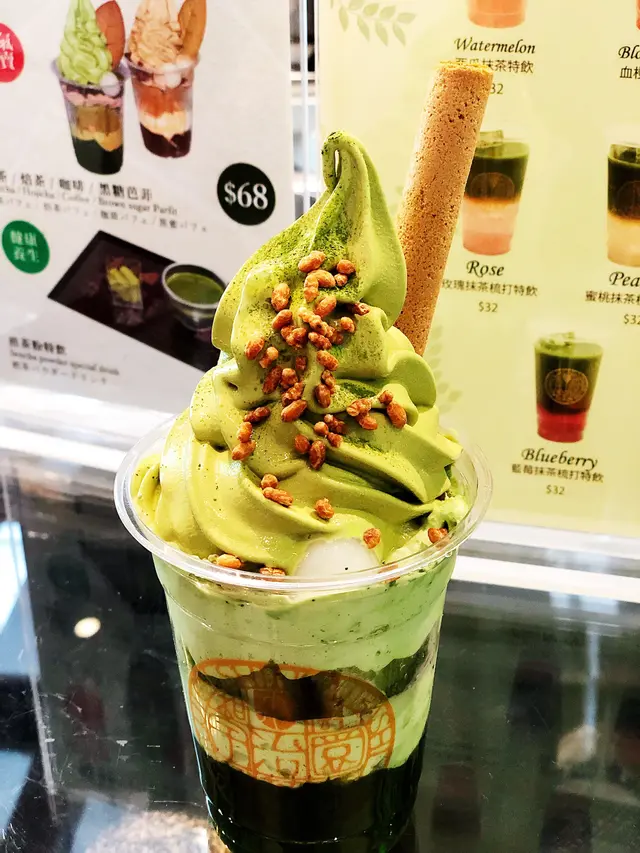 之前已經食過銅鑼灣店既宇治國,上次食過佢地既焙茶刨冰後就一直對佢地既焙茶念念不忘,今日經過海港城行下街就再訪宇治園坐底休息下.彩色丸子焙茶脆脆杯 hkd$684色糯米丸子配上焙茶軟雪糕同紅豆蓉放係脆皮筒杯內夠晒豐富.焙茶軟雪糕入口細滑,奶味同焙茶味平衡得啱啱好,奶味唔會蓋過茶香,再加上焙茶粉係雪糕上令焙茶味更顯突出.糯米丸子煙煙韌韌但丸子中間入口質感略實,未夠綿糯.食到最後脆皮杯內沾滿焙茶雪糕,入口鬆脆,一d都唔會浪費.凍抹茶 hkd$28抹茶顏色顯出濃濃純抹茶既翠綠色,第一淡入口帶抹茶既茶香,但未算十分濃郁,缺少左抹茶既澀香感,相對較平淡.…查看更多