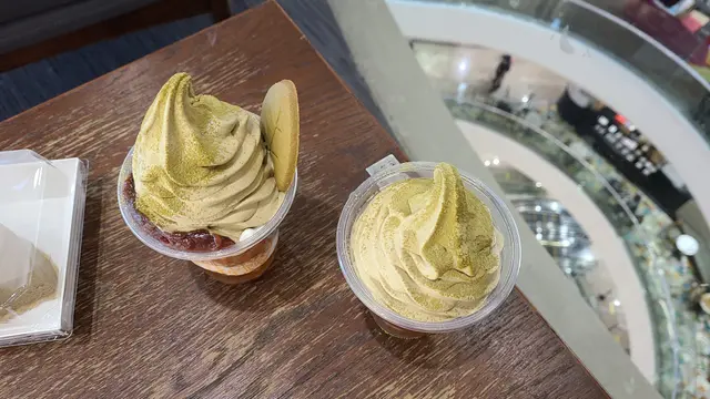 本身以為呢間係冇位坐見出面好中地方都係Starbucks枱點知行埋去睇原來枱上面寫住係公眾地方於是就買左黎食個樣整得好靚抺茶味算濃特別係有灑上抺茶粉既個啲雪糕又唔會太甜查看更多