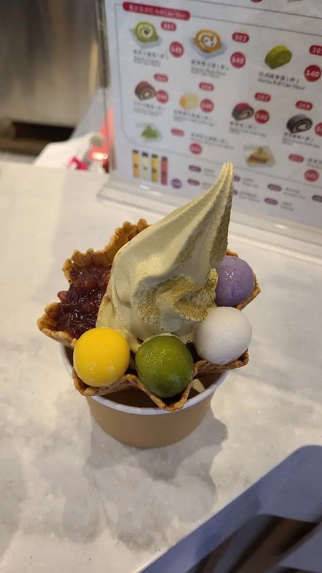 其實想試呢一間好耐㗎啦,咁因為冇得去日本嘅關係, 所以諗住食下日本甜品頂下癮啦。呢間仲要係正宗日本開過黎。十分日本味。🇯🇵🇯🇵🇯🇵雪糕叫左呢個彩色丸子抹茶脆脆杯。抹茶雪糕唔算話好甜, 味道幾好,裡面有抹綠雪糕、紅豆、彩色丸子🍡(雖然彩色,但味道好似無分別🤣🤣)口感好豐富,我覺得呢個係幾好食。蛋糕都叫左抹茶蛋糕, 口感鬆鬆軟軟, 入面既Cream都係抹茶既C, 裡裡外外都係抹茶味超重非常好吃😋查看更多