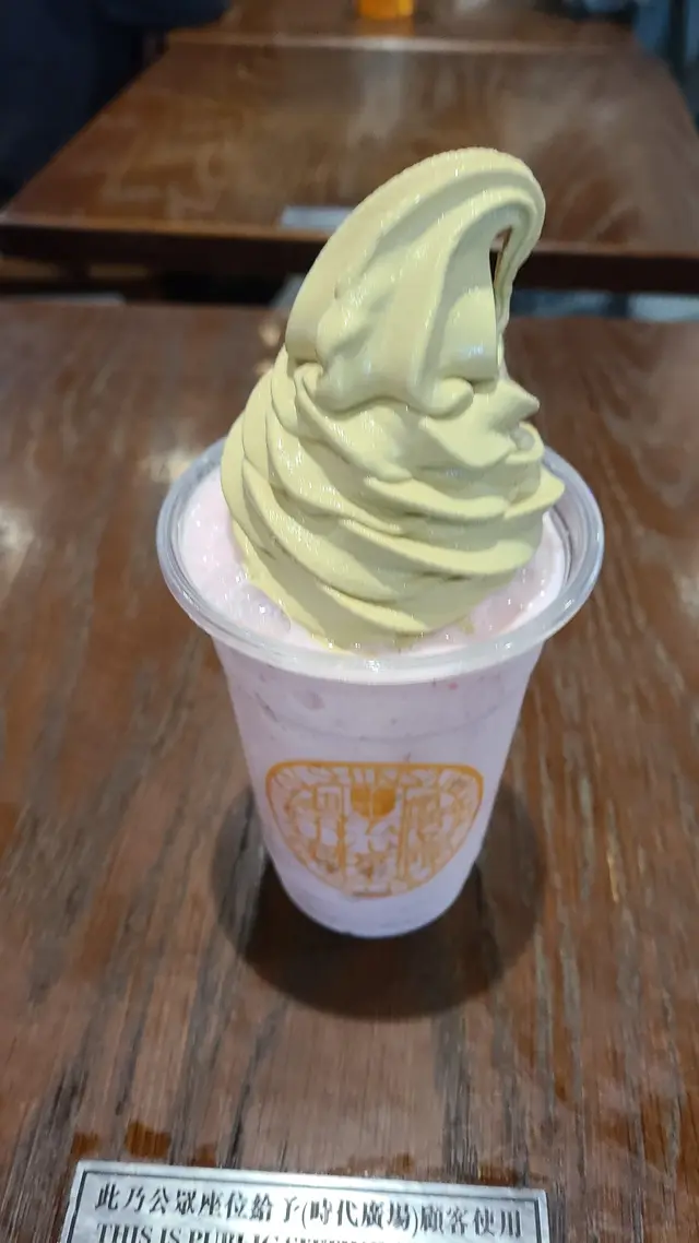 餐廳:宇治園地點:時代廣場9樓菜式:日式甜品飲品餐牌:軟雪糕,軟雪糕甜點,沙冰,珍珠,奶蓋,咖啡,豆乳,凍飲,熱飲,卷蛋焙茶牛奶飄浮 $60店員話焙茶牛奶比豆乳滑,所以揀左焙茶牛奶飄浮,有雪糕又有奶飲。面頭焙茶軟雪糕真係無得輸,又滑溜,焙茶味又濃,個焙茶牛奶都係好濃,好飲,夠濃滑。不過入面居然有7粒大冰,所以成杯基本上都係冰,牛奶只係幾啖就飲完,好過份,表面係好似好多奶飲。草莓樂園 $70草莓樂園係粉紅色草莓冰沙面頭加上雪糕,可選雪糕口味。我地當然又係揀左焙茶味。呢杯草莓味道非常淡,基本上唔覺。雪糕份量較重手。焙茶彩色丸子脆脆杯 $70焙茶彩色丸子脆脆杯係窩夫餅上面有焙茶軟雪糕,伴有4粒丸子,有綠紫橙白4種顏色,仲有滑溜紅豆蓉,面頭灑上焙茶粉。丸子我無食,雪糕配紅豆蓉好味道,個窩夫餅都算脆。呢個質素同份量係最正常。總括而言,飲品質素無雪糕食品好。個喊臉係比飲品既。查看更多