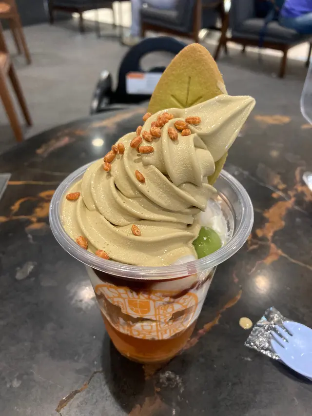 突然發現有人話要閉店,於是星期日就過嚟食。住喺新界都係小去時代廣場食嘢,一到步就買抹茶芭菲,店員有禮,個芭菲切得太靚啦。雪糕茶味適中份量較少,蛋糕同奶油份量多,啫喱都有茶味,唔會甜,係健康嘅。再加個培茶雪糕筒,佢都係唔太甜,夠健康,店員見我企喺度食,話有位可以坐喺度,太好啦🥳。很好的店員👍查看更多