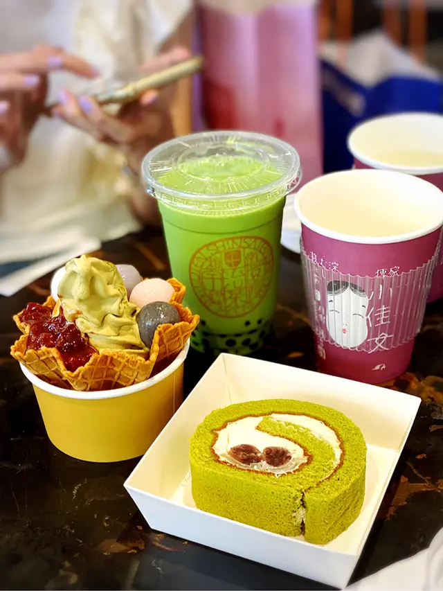 抹茶珍珠鮮奶、抹茶紅豆卷