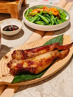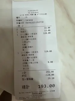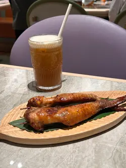今次我地去左海港城呢邊行街,呢度既泊車優惠勁易就有,消費$100就有1個鐘,係度行完食埋飯都仲得,我地就揀左一間馬來西亞餐廳食飯🇲🇾香茅椰糖烤雞全翼(2隻)($20)呢隻燒雞翼佢燒得好香,有BBQ feel,椰糖我覺得都係同蜜糖咁上下味🐥瑪萊沙嗲(3串)($58)沙嗲串我地揀左要豬,個串燒幾入味,有個辣醬跟,點埋更好食🍡椰香大蝦冬蔭功($138)個冬陰功湯幾有睇頭,裡面既大蝦真係好大隻,佢係中間切開左,令到隻蝦既鮮味都入到個湯,同時隻蝦又入曬湯味,個湯就偏酸多過辣🦐🫕少爺海南雞飯(例牌)配 清雞湯($98)個海南雞個樣雖然好似淡左d,個皮唔係黃色,但食落其實雞肉嫩滑,三色醬齊曬,碗湯係椰子湯,好清甜😋椰香青咖喱配豬頸肉($118)咖哩配豬頸肉呢個配搭幾特別,燒豬頸肉同咖哩汁都幾夾,最好就叫多碗飯就成件事perfect😆森巴蝦仁通菜($68)個通菜落左d辣醬炒,加埋三隻蝦仁都唔錯🥬班蘭咖椰多士($48)馬來西亞餐廳必叫既野食,佢呢個多士仲要係多醬既薄多士,鐘意食醬既我係大滿足🥪手標牌正宗泰式奶茶($35)呢度既泰式奶茶比較多奶,椰香味十足🧋羅漢果龍眼冰($35)龍眼冰夠曬清甜,仲有幾多既龍眼肉有得食👍🏻呢間餐廳環境都唔錯,裡面仲有海景位,我地坐外面都幾靚,野食佢唔止係馬來西亞菜,仲有泰菜,我地叫叫埋埋都幾款泰式野,質素都幾好😄…查看更多
