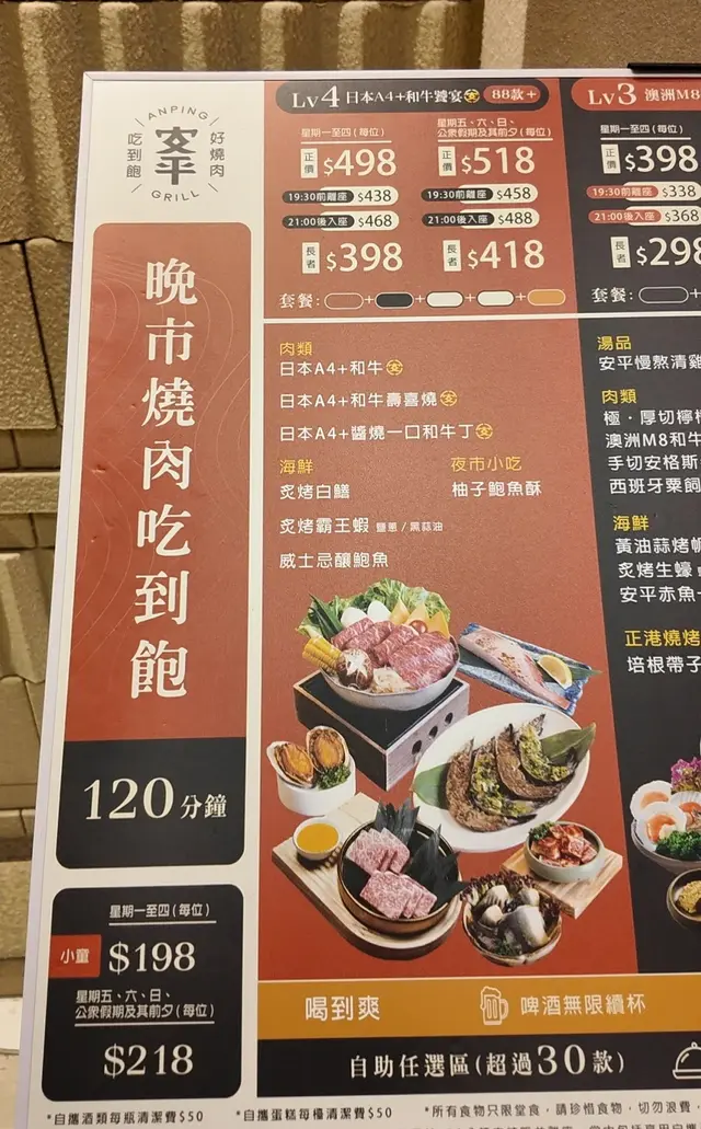 今次來到PopCorn的安平燒肉 體驗120分鐘日本A4+和牛饗宴 餐廳以職人精神打造燒肉儀式感👨🍳每道食材都經過精心處理 居然仲有慢熬清雞湯🍲 熬煮3小時清新暖胃 高質燒肉體驗性價比又高😍✨肉類推薦日本A4+和牛🐮手工精修薄切 油花如雪花入口即溶 除咗燒肉仲有日本A4+和牛壽喜燒 大大塊肉片蘸上日本蛋仲嫩滑❄️極.厚切檸檬牛舌厚切多汁牛味濃郁 附上沙漏計時燒3分鐘就食得⏳放上鐵板用刀叉切開滿滿儀式感😍手工安格斯牛小排去除筋膜 肉質軟嫩都好正🥩✨海鮮精選🦐炙烤霸王蝦黑蒜油/鹽蔥雙口味都好有特色 炙烤白鱔都好厚身口感彈牙配海苔鮮味十足 值得一試🤤海鮮拼盤入面仲有肥美新鮮既生蠔👍🏻✨自助區特色🍚櫻花蝦飯可以自由搭配香蔥海苔滷水汁 十二味醬料專區🌟配搭不同食材 重點推介招牌黃金醬 薑味可樂醬同香辣烤肉辣椒粉😍自助區有沙律也有各款燒烤蔬菜及菇菌類🥗搭配燒肉清新解膩 仲有多款台式小食任點任食✨甜品飲品甜品有乳酪雪糕可以自選不同配料🍧亦推薦芋圓仙草 芋圓好煙韌配上仙草滑嫩的仙草 甜度適中🥤飲品選擇好多 有一大個飲品櫃有四款冷泡茶及罐裝紙包飲品外 仲有特調雞尾酒 橘綠研露及檸青沁露味道清新解膩👍🏻📍安平燒肉 (將軍澳)將軍澳唐德街9號PopCorn 12樓PopFood 4號舖…查看更多
