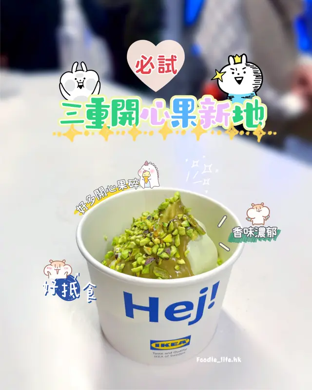 一年一度开心果食品又返嚟ikea啦~印象中上年食过雪糕都几好味嘅,今年仲多咗好多款唔同嘅产品添。又有糯米糍格仔饼牛角包等等~不过就食咗一杯三重开心果雪糕同埋开心果糯米糍,网上啲人话格仔饼一般般所以都系唔试喇。唔知点解觉得今年嘅开心个雪糕好似冇咁好食,就咁食𠮶个雪糕就冇乜开心果味,开心果味都系靠个开心果酱多啲。开心果糯米糍就更加有啲怪怪地,虽然佢个内馅系几多,但味道一般,佢仲要放咗喺雪柜,拎出嚟个皮都已经冇咁松软,对今年嘅开心果产品都几失望,试一次就算啰。