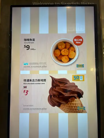 一推出榴梿牛奶新地配D168红肉榴梿肉第一日就同朋友就即刻去试我拣咗中size $39 劲多榴梿肉,超级香甜,有征微甘嘅感觉,仲有一丝丝嘅果肉,配埋牛奶雪糕,轻轻解咗𠮶种甜漏嘅感觉,不过我哋两份食一个都觉得好够!🤣而且浓郁嘅感觉,成个人都榴梿味咁🤣直到凌晨三点,我啲胃气都仲有榴梿味佢好似仲有其他榴梿美食,下次可以试埋一直以嚟都几钟意IKEA小食的,平时肉丸呀,鸡翼呀都常食,系铜锣湾算系平靓正嘅选择啦。