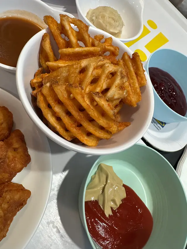 ikea10月份新menu有3款新素食,我買咗其中一款植物素青咖喱雞配蒜蓉烤餅$43,同埋植物素燒牛肉配泡菜炒飯$462款食物賣相都唔錯,素燒牛唔好睇佢咁黑實,食落又甜又軟腍,味道有啲似叉燒,係我食過嘅素肉之中算最易入口,仲幾好送飯,泡菜炒飯味道正常,對我嚟講都幾辣而植物素青咖喱雞配蒜蓉烤餅食落好香口,青咖哩好惹味,有配薯粒,唔算好辣,幾易入口,而烤餅我就嫌佢比較乾身,有小小蒜香味,如果用嚟點咖哩食就啱啱好兩款飯都合格有多,有機會會再encore …查看更多