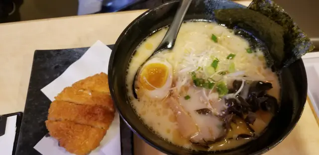 經過太子想同老公食個Casual 晚餐,唔想食得太貴,上網搵見食評唔錯,一於試試。黎到發現都幾多人,6點半時間算早,等左唔使5 分鐘就入得。叫左我鍾意食既豬軟骨拉面,豬軟骨煮得非常䄒,好入味一咬就融咁,好好食。仲有隻流心蛋真係加晒分。拉面佢整得偏軟,如果喜歡硬身拉面既人記得落單個陣同佢講聲 :)老公食左帆立貝滑蛋雞肉飯,佢病病地無乜胃口,佢都話個飯夠水份,好易入口。其實食完都好飽,但係見到隔離枱食緊甜品,好吸引,於是叫左寒天抺茶奶凍,細細杯岩岩好,重點係綠色既蕨餅,唔係度度有得食架~ 呢間餐廳雖然唔算大,同隔離位都幾近,不過咁既價錢質素黎講我覺得真係超值啦。…查看更多
