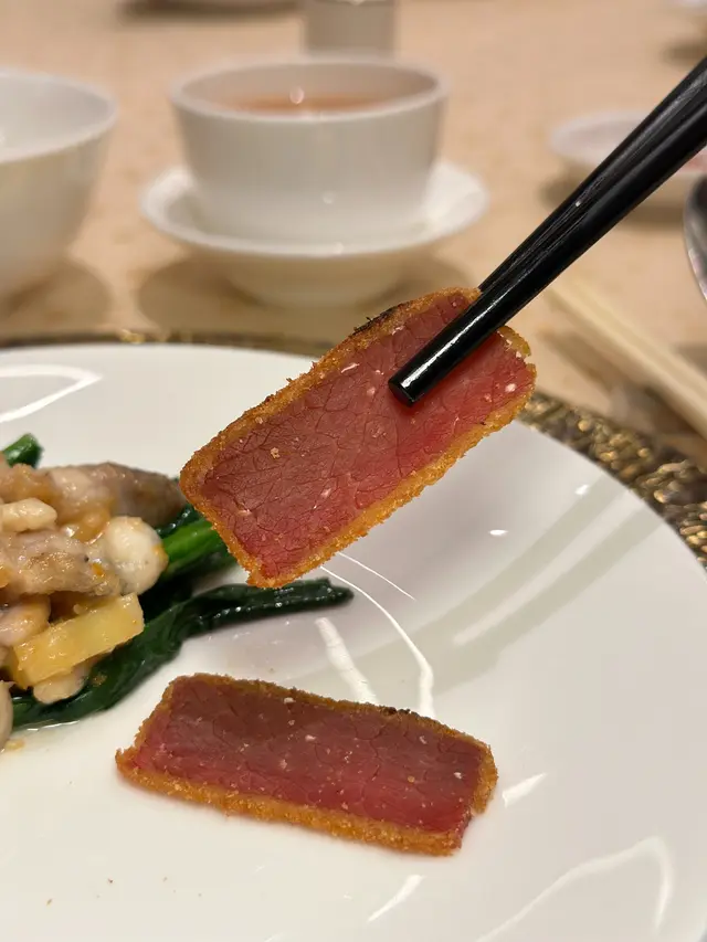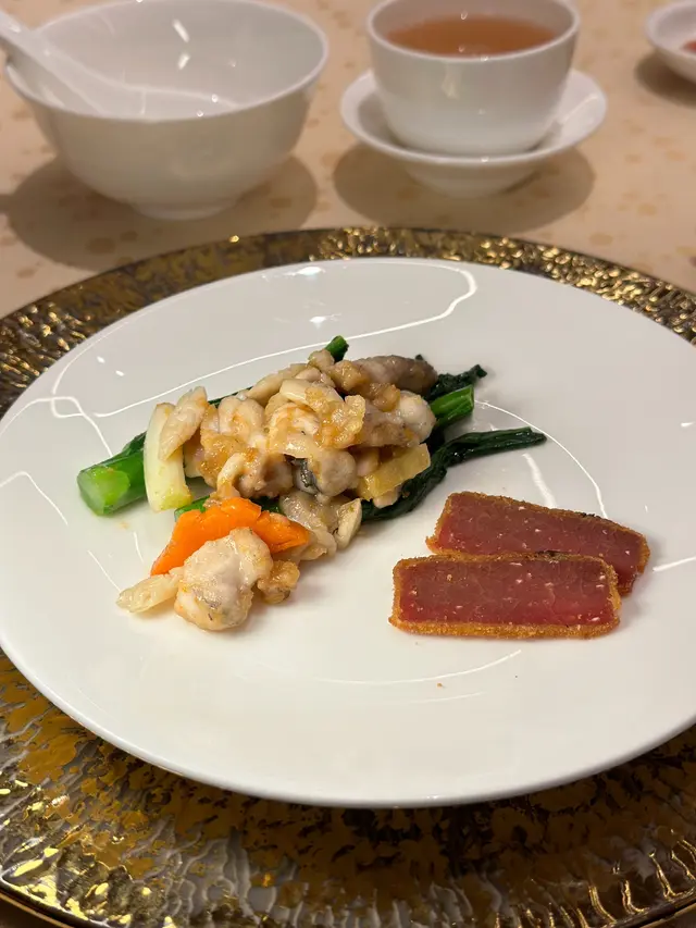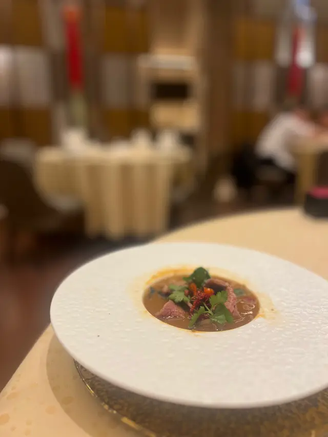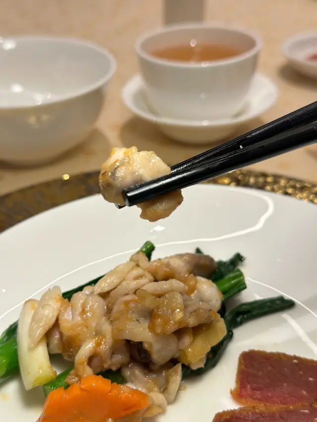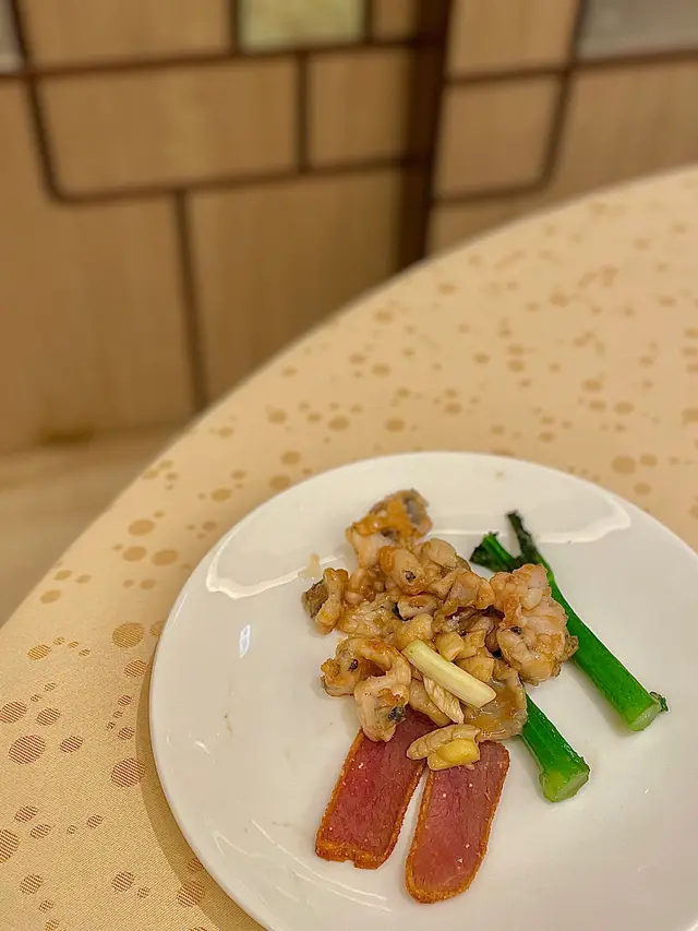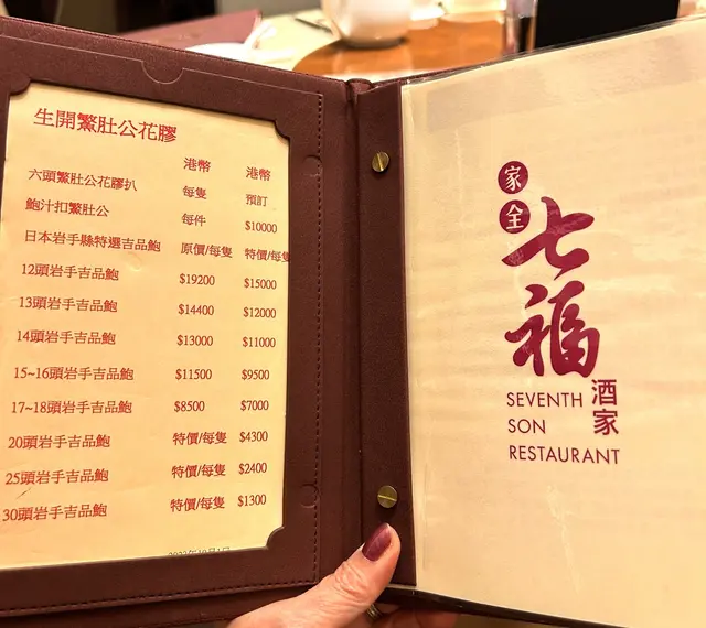 友人請食飯,去了米芝蓮一星高級粵菜「家全七福」,原來這家中菜由福臨門創辦人徐福全兒子、人稱七哥的徐維均所創立,在北京、上海、香港灣仔、尖沙咀以至東京都有分店,主打高級傳統粵菜,如鮑參翅肚、仙鶴神針及燒乳豬等,務求以上乘的時令食材加上豐富經驗的大師傅手藝,精心烹調每道上品佳餚。朋友叫我點菜,老實講,普通菜式都標價$380起,海鮮類如鮑魚、蟹蓋等動輒過千,實在不好意思點。最後兩個人吃了指天椒薑蔥炒鮮豬肝$280,七福脆皮雞半隻$380,及鮮茄滑蛋煮手切牛肉$380,最後有甜品生磨杏仁露及合桃露各$80,人均$700多。指天椒薑蔥炒厚切豬肝,新鮮又爽口;招牌七福脆皮雞皮脆肉嫩;鮮茄滑蛋煮手切牛肉看似是家常小菜,但其實做到不酸也不太甜亦不容易;而生磨合桃露比杏仁露有口感。可能點的都不是主打菜式,賣相及味道其實都是正常發揮,未有驚喜。…查看更多