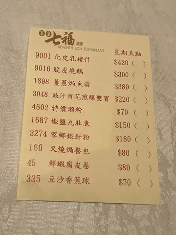 🥰 近日几位食家老友不约而同讲起 “家全七福”, 又话系 “福临门” 承传, 又话晚市座无虚席, 我梗系上 OpenRice 做功课, 老实讲, 好坏参半, 主要喺 贵, 低性价比 同埋 质素普通. 今日江湖饭局, 小试牛刀, 主攻点心.🤗 蜜汁叉烧肠, $80.🥟 鸡粒荔芋角, $80.🐚 百花酿鱼肚, $80. 🦐 笋尖鲜虾饺, $80.🐟 蜜汁烧鳝, $420.🤗 豉椒鸡球炒河, $280.🥰 红豆沙, $70.😱 总结: “家全七福” 属酒店中菜厅, 定价有点离地. 装修够唒架势, 可惜楼底唔够高, 服务人员充足, 但唔够温度. 论食物, 点心四平八稳, 招牌菜 蜜汁烧鳝 做到皮脆肉弹, 但真系冇惊喜㖞, 豉椒炒河 又炒唔出 “大排档” 嘅镬气, 哈哈.…查看更多