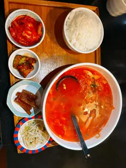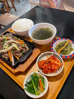 尖沙咀韓國街街尾 專賣傳統韓國菜下午茶仲有優惠 都幾多人排隊食咁我都唔執輸 一個套餐包4個經典前菜 菠菜、芽菜、泡菜、蘿蔔 啖啖都係傳統韓式牛肉石頭飯 -熱辣辣石鍋上枱滋滋聲,牛肉醃得入味,嫩滑唔韌拌入生蛋黃、菠菜、甘筍絲、芽菜同冬菇,材料豐富最正係飯焦,金黃香脆,撈勻秘製辣醬鹹香辣味一次過爆發辣海鮮湯飯 -湯底用大量海鮮熬製,鮮味濃郁得嚟帶住勁道十足嘅辣勁,材料豐富到不得了大蝦爽彈、青口鮮甜、魷魚柔韌,仲有啲蜆肉同雜菇每啖都係驚喜 湯飯吸收晒海鮮精華…查看更多