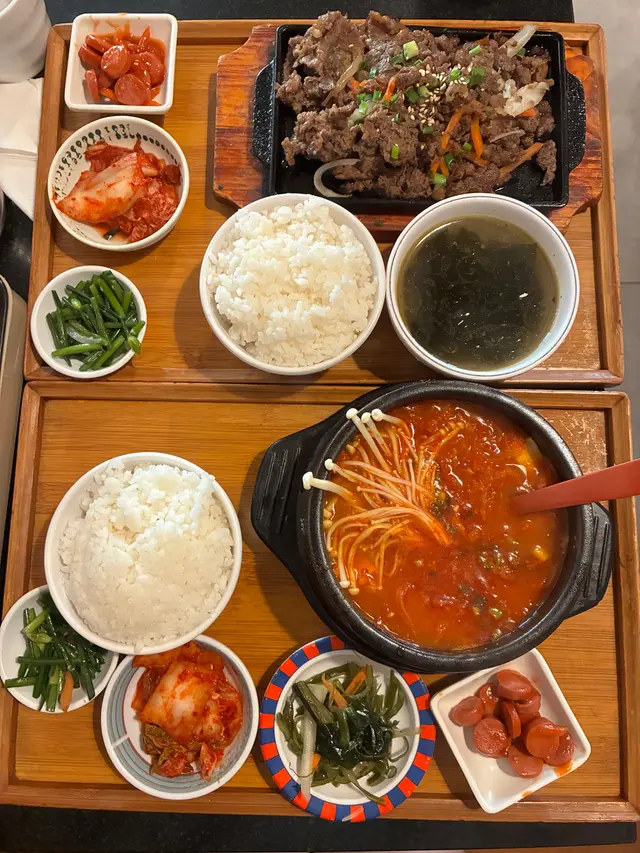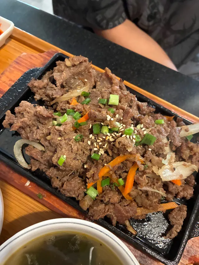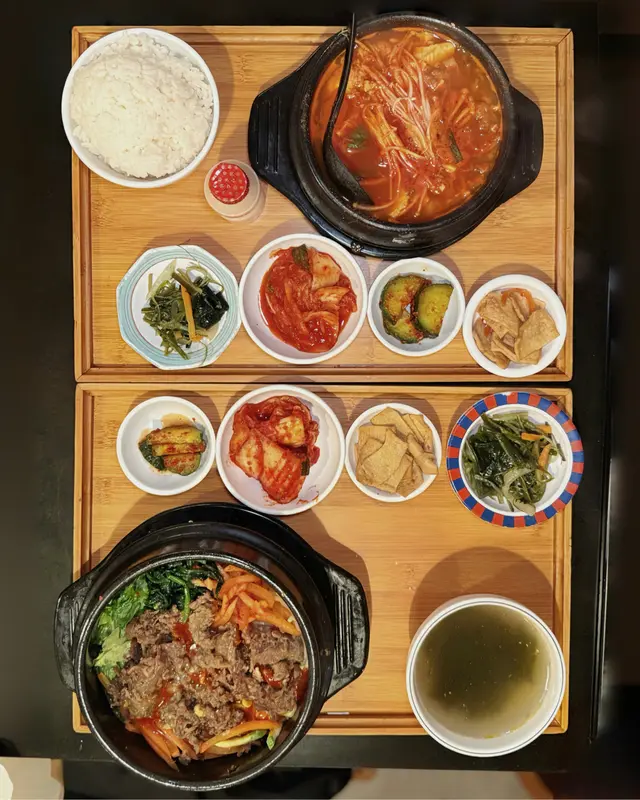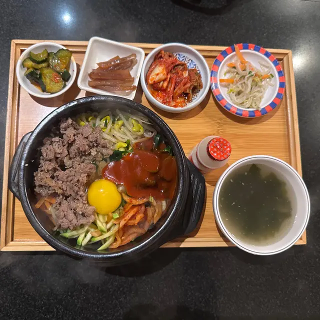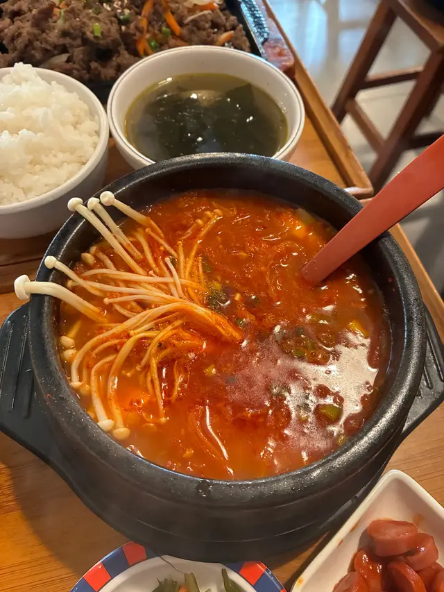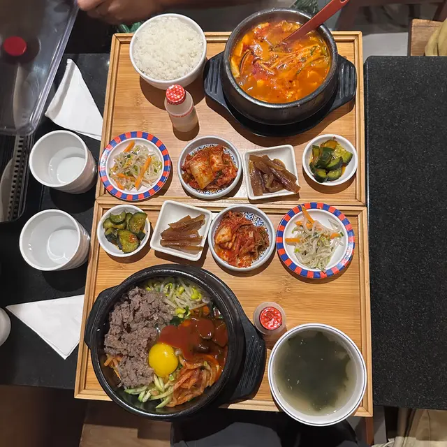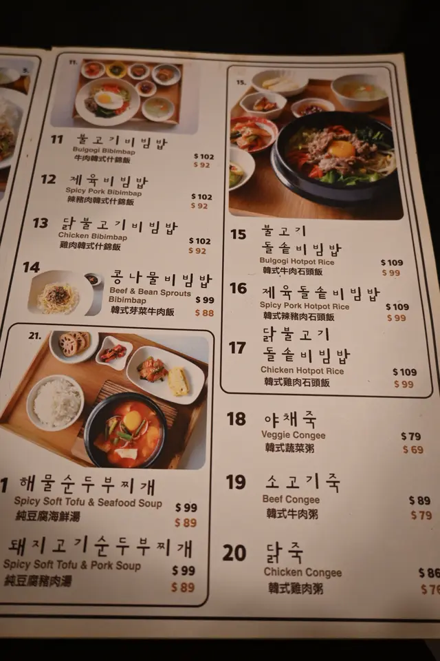 經過見到這間韓國餐廳的裝潢有些少家居風格,感覺不錯,就進去了~點了兩款套餐,每個餐都會有支益力多😄 還有韓式配菜:泡菜、青瓜、番薯、芽菜🤩🔶韓式牛肉石頭飯最喜歡就是聽到石頭鍋飯的「茲茲」聲🤣待一會就把所有配料拌在一起,和正宗的韓國石鍋拌飯一樣,有芽菜、青瓜、紅蘿蔔等,材料豐富👍🏾牛肉都很嫩,容易咬開😋加埋個蛋黃拌在一起吃🥰正!醬汁方面,是偏甜的微辣,和牛肉飯很夾~吃到底當然還有飯焦🤤非常香口,這個套餐還有海帶湯,也是不錯的☺️🔶 純豆腐海鮮湯這個意想不到的好吃~有蜆、魷魚……全部都很新鮮,沒有醒臭味,還有生雞蛋😋材料多到幾乎滿瀉🤣湯底有些少辣,辣味比石頭鍋飯重一點,但不會過辣,用來拌飯吃一流👍🏾⭐️⭐️⭐️⭐️⭐️⭐️⭐️⭐️⭐️⭐️⭐️⭐️⭐️⭐️純豆腐海鮮湯$99韓式牛肉石頭飯$109…查看更多