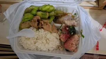 第一次写外卖食评,一个人唔煮饭就会买外卖,有选择困难的人真系唔应该拣三送饭, 有蒸鱼,有薯仔咖哩, 有肉饼 ,炸鸡棒, 南瓜,几款菜。。。最后拣左鸡翼, 朱扒,粟米鱼块。白饭自己一个盒, 其他三个送, 唔理系咩味咩汁都一个盒,一分钱一分货,要求唔可以太高。唔热既白饭,好彩都唔干唔硬,加埋粟米汁就好好多。朱扒好大块,肉质算嫩滑。老抽豉油鸡翼放左落粟米鱼,味道变得好奇怪,又咸又杰又有甜味。整体三款食物连白饭都唔够热。返屋企几分钟脚程,唔会咁快冻卦,所以我觉得唔好味。