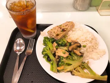 唔知啲人系咪食神上身,以为自己入左米芝连餐厅咁黎评,真系唔公道啰。黎左好多次嗌两𩠌饭拎走,次次都顶爆个盒,成年男人食都饱到上心口。唔止份量多,𩠌亦多!(支竹鱼柳有成8-10旧鱼)而且未试过食到难食既𩠌,干净企理多选择。我好钟意食炒蛋,中式炒蛋黎讲,我觉得系高水平。炒咁大盘蛋,每次都系嫩滑有蛋香,师傅功不可没啦!两𩠌饭仲连埋例汤、或咖啡茶。例汤日日唔同,足料有汤渣无味精,咖啡茶系有惊喜,系好饮有奶香既港式。而家啲懒靓茶记,$60几蚊迷你焗饭可以食唔饱,常餐既炒蛋变煎蛋皮。呢间平民两𩠌饭店,我唔会话蔗渣嘅价钱食到龙虾既味道,但味道、份量对得起个价钱有突,抵赞!仲未讲,平时啲两𩠌饭店嗌三𩠌饭,系每样𩠌俾少啲你,份量又系一个盒。呢度听到你嗌三𩠌饭,系即刻拎个吉盒同你装𩠌。十分公道!性价比之选!