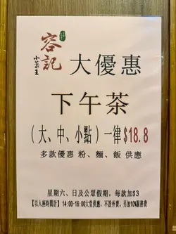 大只仔今次觅食嘅店舖就系💥 容记小菜王 💥大只仔今次介绍一间米芝莲推介餐厅,旧店喺深水埗已经大排长龙,而家搬迁太子新店更加干净企理服务高级,其中获奖菜式「脆皮烧腩仔」系大只仔喺中式酒楼食过最好食嘅烧腩仔,另外,蒜香骨、第一咀、沙拉骨都系必须推介。⋯⋯⋯⋯⋯⋯⋯⋯⋯⋯⋯⋯⋯⋯⋯5⭐️ 超班3⭐️ 一般/正常1⭐️ 差味道 ⭐️⭐️⭐️⭐️⭐️抵食 ⭐️⭐️⭐️⭐️⭐️服务 ⭐️⭐️⭐️⭐️⭐️环境 ⭐️⭐️⭐️⭐️加一服务费 ✅⋯⋯⋯⋯⋯⋯⋯⋯⋯⋯⋯⋯⋯⋯⋯⋯🔥 得奖脆皮烧腩仔 $138烧腩仔采用五花腩,层次分明,肥瘦适中,每食一啖都充满油香,而外皮烧到金黄色,脆卜卜,咬一啖外皮香脆得夸张,惊为天人,非常之好食。🔥 咕噜肉 $108选用新鲜无骨猪肉,食落口同冰鲜肉肉质分别好大,新鲜猪肉肉质更加鲜嫩松软,咕噜肉外皮薄脆,酸汁唔会太酸甜甜地啱啱好,选用新鲜菠萝,十分开胃。🔥 招牌沙拉骨 $108一样选用新鲜猪肉,啖啖肉,肉质好松软,入口即化,配上沙律酱极之开胃。🔥 麻辣口水鸡 $68口水鸡肉质比较结实,强劲辣味十分之刺激味蕾,会越食越想食,洒上白芝麻更加惹味。温馨提示:餐厅需要收茶位 $15 ,酸菜 $15…查看更多
