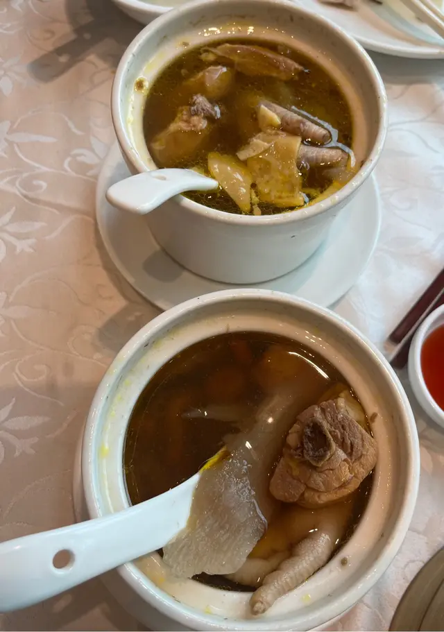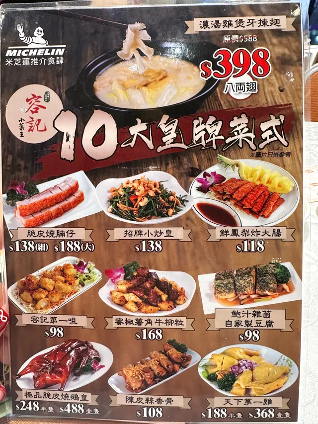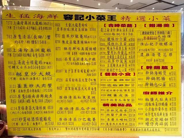 與好友太子站《容記小菜王》嘆茶,因點心超級抵食,午市蝦餃、蘿白糕$9.8,下午茶2點-4點大中小點$18.8,裝潢復古懷舊風大玻璃窗自然採光環境舒適,我們點左🥢容記蝦餃皇$9.8(每位可選一籠):頗大隻蝦餃蝦仁爽口,蝦餃皮晶瑩剔透,超抵食值得推介。🥢化皮燒腩仔$68 :五花腩層次分明,肥瘦適中,外皮勁鬆脆肉味香,十分好食。🥢乳鴿$38.8 :表皮炸得香脆,肉質嫩滑入味好食。🥢螺頭瑤柱火腿准山雞腳燉瘦肉湯$38 :好足料湯底清甜,飲得出無味精超級正👍早晨孖寶$36.8🍴鮮竹牛肉球:有牛肉味、馬蹄爽脆,口感軟滑。🍴時菜鯪魚球:口感爽彈,味道不錯。🥢蟹籽燒賣皇$18.8:豬肉軟腍味鮮,蟹籽增添鮮味。🥢蜜汁叉燒腸$18.8:腸粉皮薄很滑,叉燒肥瘦適中,夾生菜🥬爽口清新口感,腸粉軟糯帶點煙韌。🥢四寶滑雞扎$31.8:大件雞髀肉、魚肚、火腿、叉燒,好美味。甜品:薑汁糕:薑味濃香煙煙韌韌微甜。芝麻卷:芝麻味香濃,兒時回憶。…查看更多