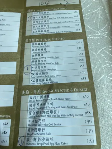 复活节冇咩地方去,突然谂起好耐冇嚟,所以远远都再嚟食☺️!今日晏昼未到1点,平时周末都唔系好需要排队,竟然今日嚟到嘅时候都要等咗一阵🥹。等位期间四围望吓,见到容龙今年都继续荣获米芝莲荣誉,真系犀利😃!今次嚟到唔敢叫咁多嘢,只系叫左四宝鸡扎、鲍汁炆凤爪、珍珠糯米鸡、蜜汁叉烧肠粉、沙律明虾角、鲜奶莎翁球😍😍!啲食物没有一般酒楼上点心咁快,应该系因为即整,所以啲食物上台时好热辣😙。第一个点心就系沙律明虾球😍,放上枱时已闻到香味,一咬落去好鬼热🤣🤣,但炸得好脆口,而且虾肉亦系大大粒,亦都很真材实料正😃!而另外鲍汁凤爪我觉得味道不错,鸡脚都好腍,但鲍汁略微不太浓。四宝鸡扎是我的最爱😻,两件目测好像够大件,入面既鱼肚几厚大又几入味😚,但鸡肉就不算大😅。而其余三样点心就觉得一般。
