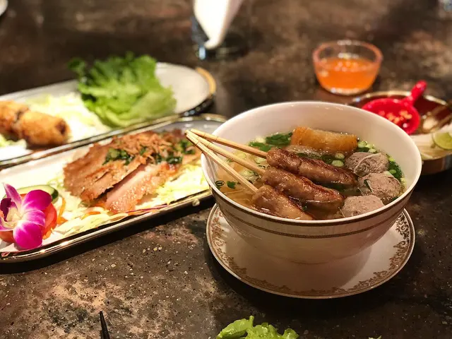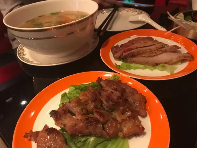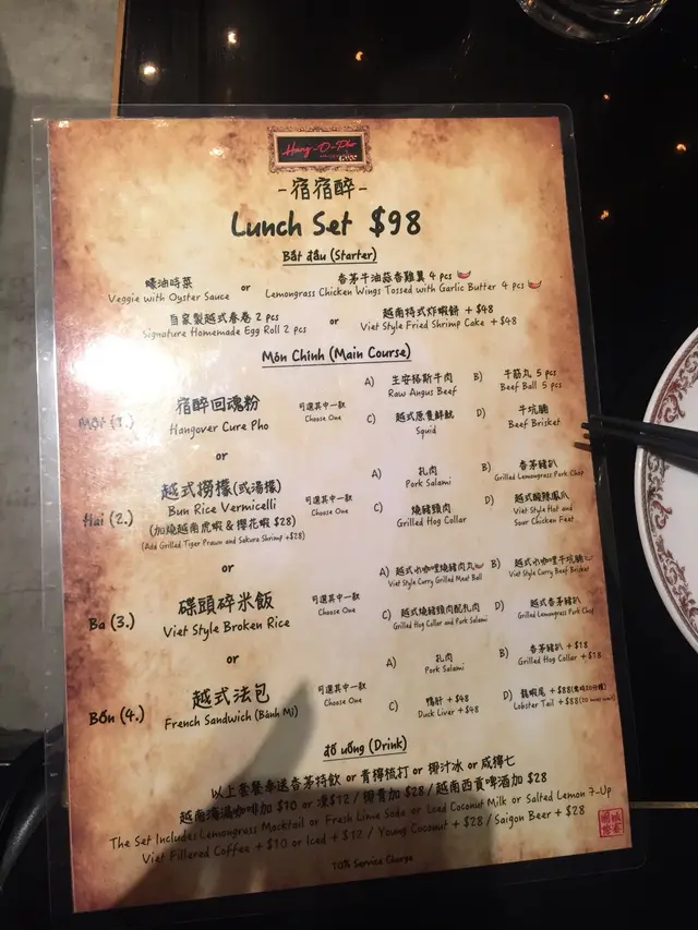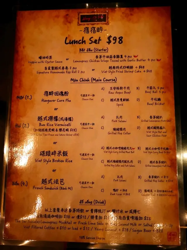 <燒越南虎蝦扎肉櫻花蝦撈檬$118> (好味:4/5)(抵食:3/5)炭燒虎蝦好大隻,扎肉三大塊,上菜嘅時候會附送一碟芽菜辣椒仔同埋檸檬片用黎撈檬粉食,味道相當唔錯。