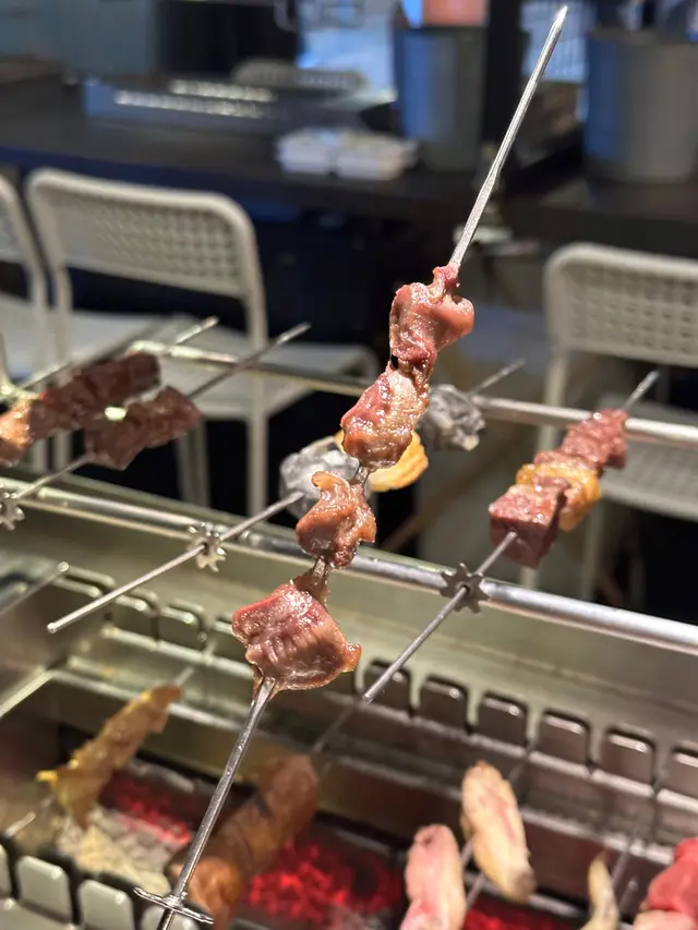 座位寬敞舒適,環境乾淨,適合朋友聚會或家庭聚餐。餐廳仲有多款飲品任飲,飲食配搭好足夠!餐廳用360度自動旋轉電烤爐,唔使自己反串,好方便又均勻燒熟🥩。食材豐富,有多款牛、豬、羊、雞肉串,全部任你食!仲有新鮮海鮮同蔬菜選擇,仲有11款海鮮!滿足唔同口味需求。🦐 海鮮愛好者的天堂呢間店唔止牛肉正,佢嘅海鮮先係大驚喜!竟然有成 11款海鮮,真係食到停唔到手。最正一定係白鱔🐟,燒到外脆內嫩,魚皮香脆卜卜!仲有脆肉鯇,魚肉爽彈,燒完仲保持到嫩口,完全唔會散!😋虎蝦🦐更加係必食,落少少鹽簡單燒,蝦肉鮮甜得嚟仲有彈性!其餘仲有帶子、魷魚、蜆…選擇超豐富。最重要係用自轉爐燒,完全唔洗手忙腳亂,坐定定都可以食到完美燒海鮮~😍🥩 牛魔王必食系列🤩!一共有五款牛:牛肩胛、西冷、牛舌、牛肋腩、牛板腱,款款都唔同風味,完全唔會食到悶。牛肩胛肥瘦交織,落爐燒到表面微焦,油脂滲出嚟🔥 一咬落去滿嘴香氣。西冷就啱曬鐘意瘦肉嘅朋友,肉質爽口冇渣,食到停唔到口。牛肋腩油脂最豐富,燒完外脆內嫩,好似入口即溶~🤤牛板腱就係我最驚喜嘅一款,肉質結實但燒完唔會柴,仲帶淡淡肉香,好有嚼勁!至於牛舌,厚切版本好爽口,燒完加少少鹽已經好正!🔥總結:呢度嘅牛肉真係超高水準,250蚊任食,絕對值回票價!📍 深水埗東京街50號地舖🚇長沙灣站A2出口,步行約5分鐘…查看更多