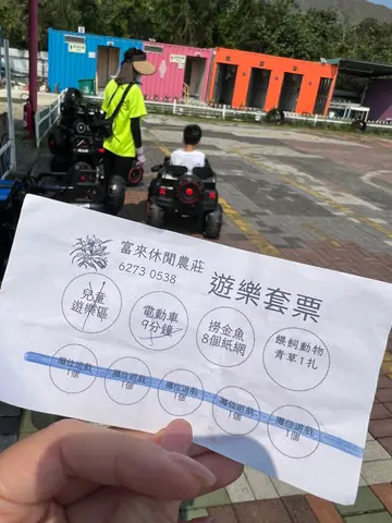 趁住礼拜日放假约埋亲朋好友嚟到元朗呢个农庄玩吓同chill下~农庄有好多活动体验都好好玩,仲有任食BBQ添,好正👍🏻钓鱼富来农庄仲有钓鱼嘅活动,适合喜欢钓鱼嘅朋友。你可以喺宁静嘅水面上静静等待,感受钓鱼嘅乐趣。钓到鱼之后,仲可以选择将佢带走或者当场享用,真系一举两得。儿童游乐区对于带小朋友嚟嘅家庭,富来农庄嘅儿童游乐区绝对系个天堂!有弹床、波波池,仲有泡泡池同电动车,绝对可以让小朋友玩到不亦乐乎。孩子们可以自由探索,开心玩乐,父母都可以安心休息。捞金鱼同喂羊嘅活动亦好受小朋友欢迎,让他们可以近距离接触动物,增进对自然的认识。此外,农庄仲有夹公仔机同篮球机,无论大人定小朋友都可以一齐玩,增添了不少互动,令整个旅程更加难忘。干净厕所值得一提嘅系,农庄嘅厕所保持得非常干净,这点对于家庭或大型聚会来说真系好重要。无论你系饮完水定系游玩一整天,能够使用到干净嘅厕所,令大家都感觉舒适,无需担心卫生问题。总括而言,富来农庄系个理想嘅度假地点,无论系食物、活动,还是环境,都唔会令你失望。无论你系想同家人聚会,定系同朋友享受周末,都非常合适。强烈推荐比钟意户外活动同亲子互动嘅朋友,来到这里一定可以得到充实而快乐的体验!…查看更多