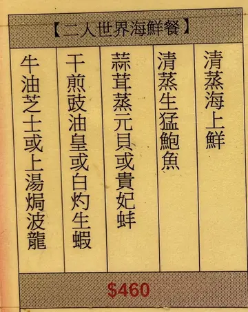 自己住九龙城, 好多时都唔知去边食饭好, 感觉好似食来食去都系果 D 野, 自从屯马线开通左之后, 多左好多外来人, 食肆系旺左既, 但唔代表质素会好左, 就好似呢度, 前身叫竹园海鲜酒家, 以前人流畅旺到要等位, 但依家屯马线开左都唔觉得佢有旺到, 当然有佢既原因啦, 首先系服务差左好多, 海鲜选择唔多, 两位计 $460 唔系好贵, 但老实讲系食唔饱, 另外仲要加多半只炸子鸡, 果条海上鲜真系细得可怜, 只有一只手板咁大条, 如果要转其他就一定要补钱, 而且补既价钱仲贵过我系街市买 ! 味道方面只系普通, 称不上好好味, 只系海鲜算系几新鲜 !