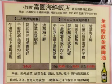 富園海鮮飯店 (九龙城) 网址: https://s.openrice.com/QrLS0Op4000 地址: 香港九龍城太子道西454-456號地舖 电话: +852 23822168