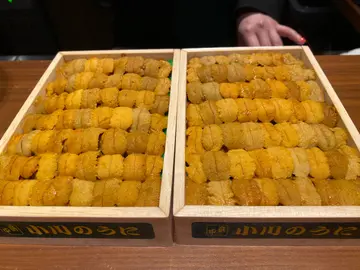 荣获京都米芝莲一星餐厅,主打怀石料理,最有名的是澎湃海胆手卷,在薄薄的一层紫菜片上铺满满泻的新鲜海胆。