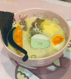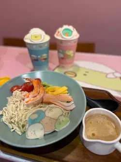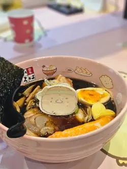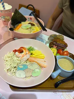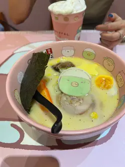 身为 mofusand 迷既我,就算铜锣湾唔系常出没的地方,都要去富山拉面,皆因佢哋近排既期间限定主题店就系炸虾猫 mofusand 啦~拣左平日放工时间去朝圣,远远已经见到人龙,但唔算等得好耐还可以接受,排队时就谂定食咩,坐低无耐就上菜啰 👍🏻特制牛奶拉面 $98开头有点担心汤底会唔会太奶,又唔会㖞,反而恰到好处好香滑,拉面弹牙,仲有猪软骨、叉烧、炸虾、半只流心蛋,同埋猫猫图案既鱼片,好味 😋特制咖喱捞面 $118这个是朋友点的,炸虾外脆内软,就算相机食先都仲热乎乎,而且连配菜都好有心思,造型有星星同心心,睇见到开心㖞~特制章鱼烧 $38一口小丸子,岩晒咀仔细细既朋友~特制士多啤梨椰果梳打 $38特制白桃乌龙奶茶 $38上面系满满既星星 cream,有猫猫图案既棉花糖好烟韧,唔会好甜唔错啊~做得主题店,除咗店舖里里外外充满 mofusand 外,又点小得其他精品呢,有环保袋、拉面碗套装、扣针,好吸引呀~…查看更多