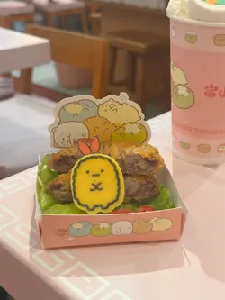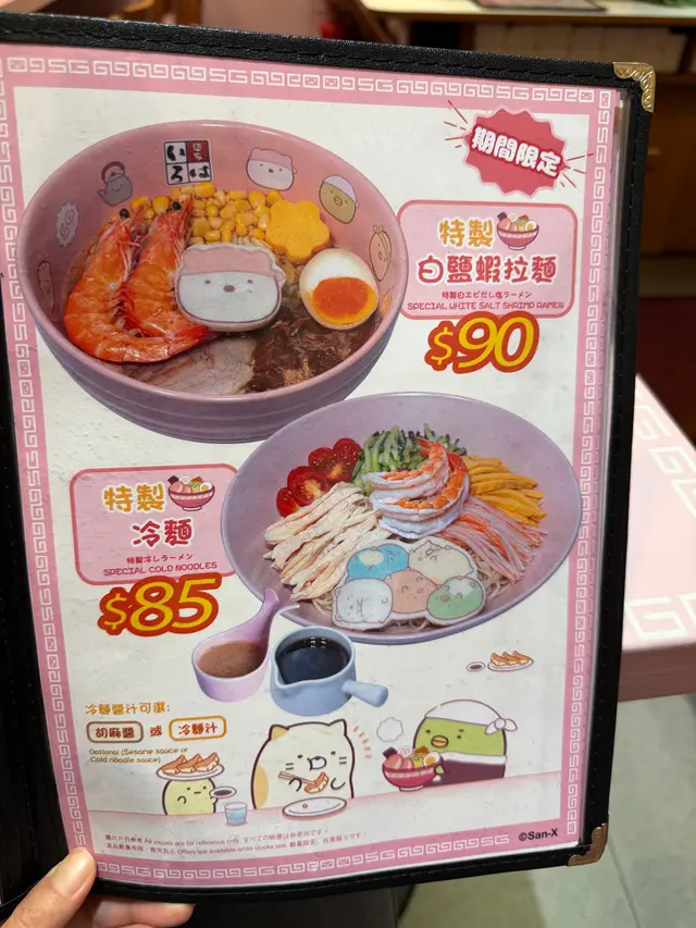 听讲铜锣湾有一间主题拉面餐厅,好有心思,定期会有唔同卡通人物主题嘅crossover,今年八月至11月嘅主角就系角落生物!一入到餐厅就有劲多唔同嘅周边公仔布满唔同角落,筷子、牙签同杯嘅套都系角落生物,连墙身嘅装饰都系佢哋,感觉就好似比佢哋包围住咁,好梦幻,可以四围打卡影相,角落生物嘅粉丝一定好钟意!拉面、甜品同饮品都有特别加咗角落生物嘅元素!另外店舖仲可以加钱购买周边,有角落生物嘅碗、环保袋、file 仔同锁匙扣➤白盐虾拉面$90中间有只可爱嘅小白熊鱼板,汤底唔咸,配料好丰富,有两只虾、叉烧、猪软骨、糖心蛋、花花形状嘅玉子、粟米➤黑酱油拉面$90中间都系有只好可爱嘅炸猪扒鱼板,汤底颜色系深邃嘅黑色,但唔会太咸,酱油味都容易入口,呢款就冇虾,改为蟹柳➤栗子紫薯饼$28用印有角落生物公仔嘅纸盒装住,热辣辣新鲜炸起,外脆内软,栗子紫薯蓉几棉密,紫薯味好香,唔错👍🏻仲有只炸虾图案嘅玉子烧➤串烧鸡软骨$38有四串,沈咗椒盐粉,炸得几香口,味道咸咸香香,肌肉熊几钟意➤特制芭菲$48上面系云呢拿雪糕,撒左啲脆米同士多啤梨酱,下层系士多啤梨味嘅奶冻,仲有一小嚿年轮蛋糕、红莓同蓝莓➤荔枝椰果梳打$35超级有气嘅荔枝梳打,系条脷有啲爆炸糖Feel,面头仲有层Cream, 糖碎粒同卡通人物样嘅绵花糖,饮落仲有椰果粒➤白桃乌龙奶茶$35同样面层有层Cream同卡通线花糖,味道清甜_🍽味道指数:★★★☆☆📷环境指数:★★★★☆🛎服务指数:★★★☆☆💰抵食指数:★★★☆☆😋推荐指数:★★★★☆📍富山面家查看更多