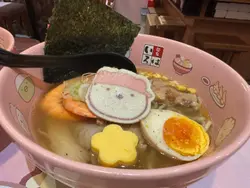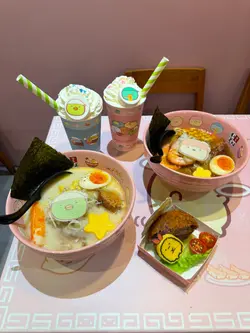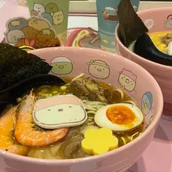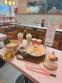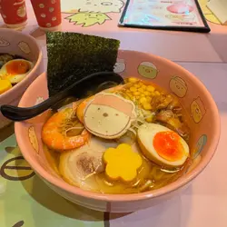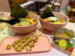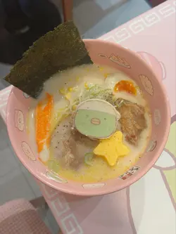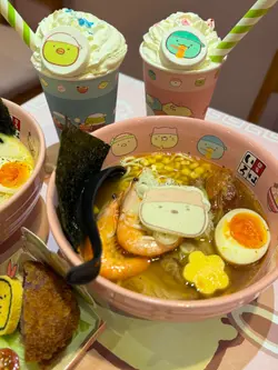 身為 mofusand 迷既我,就算銅鑼灣唔係常出沒的地方,都要去富山拉麵,皆因佢哋近排既期間限定主題店就係炸蝦貓 mofusand 啦~揀左平日放工時間去朝聖,遠遠已經見到人龍,但唔算等得好耐還可以接受,排隊時就諗定食咩,坐低無耐就上菜囉 👍🏻特製牛奶拉麵 $98開頭有點擔心湯底會唔會太奶,又唔會喎,反而恰到好處好香滑,拉麵彈牙,仲有豬軟骨、叉燒、炸蝦、半隻流心蛋,同埋貓貓圖案既魚片,好味 😋特製咖喱撈麵 $118這個是朋友點的,炸蝦外脆內軟,就算相機食先都仲熱乎乎,而且連配菜都好有心思,造型有星星同心心,睇見到開心喎~特製章魚燒 $38一口小丸子,岩晒咀仔細細既朋友~特製士多啤梨椰果梳打 $38特製白桃烏龍奶茶 $38上面係滿滿既星星 cream,有貓貓圖案既棉花糖好煙韌,唔會好甜唔錯啊~做得主題店,除咗店舖裏裏外外充滿 mofusand 外,又點小得其他精品呢,有環保袋、拉麵碗套裝、扣針,好吸引呀~…查看更多