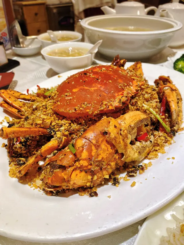 ### 食評:金華火腿翅與避風塘炒蟹在最近的一次用餐體驗中,我有幸品嘗到金華火腿翅和避風塘炒蟹。#### 金華火腿翅首先來談談金華火腿翅。這道菜的外觀就讓人食指大動,翅膀的表皮金黃誘人,裡面的餡料則十分豐滿。每一口都能品嚐到火腿的濃郁風味,肉質鮮嫩,與翅膀的嚼勁相得益彰。湯汁清甜且不油膩,完美地提升了整體的味道層次,讓人感受到一種難以忘懷的口感。#### 避風塘炒蟹接下來是避風塘炒蟹,個人覺得這個比較遜色,蟹炒得太乾了。…查看更多