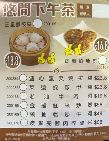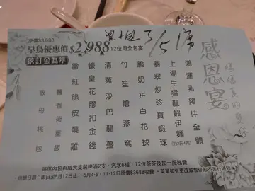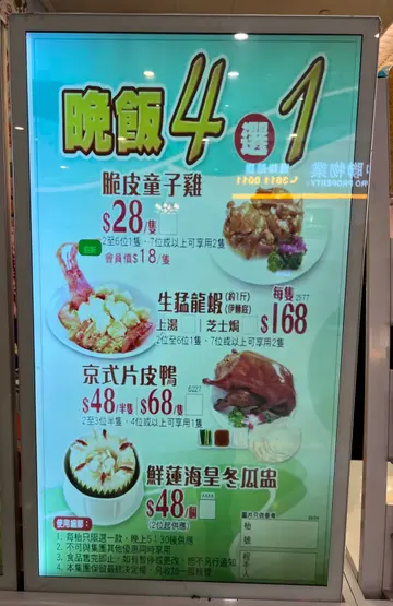 其实我有啲失望,但基于人道立场以整体嚟评分俾个ok佢。食物:龙虾伊面(68)见最近优惠小菜有个龙虾伊面,谂住去试吓。去到一共有6款,不过只能6选1就照食龙虾。面低系上汤,唔系芝士,其实唔系好夹,唔知系咪虾壳炒太㶶,变咗有阵味,唔系话好好食。龙虾本身系好食嘅,系个面拉底咗分。黄金虾(138)要嗌一个正价小菜,几好食,新鲜煮出嚟仲好热,啲蛋黄收埋系碟底,食第二间酒楼佢哋低包裹住成只虾,大家手法有啲唔同,各有各好食啦。花生(唔知几钱)有啲香叶同八角,可能自己炒嘅,咁都有诚意嘅,但问题一阵先讲。服务:得几枱人,我哋都偏晏先去,一啲都唔繁忙,但写完纸冇人想嚟落单,成日避开我哋啲视线真系好差。价钱:埋单两个人共278,我都知酒楼收茶芥加一,但系点计到条数呢。因为我后来先知,都冇check单。2025年嘅8月嘞,不时睇新闻都见执咗好多老牌食肆,仲好似十几年前咁狼死式收费,最后仲有几多人会继续去吖。题外话:某间出名做1蚊鸡特价嘅酒楼,二人以上系可以嗌多啲款,呢度就冇得咁。某酒楼又唔会叫人一定要嗌正价嘢,本身啲人自己大多数都会嗌少少啦。可能系想杜绝呢啲问题啩,但吸引咗啲人流都系当宣传费,而家咁得几枱客会好啲咩?佢个定价企到咁硬,我谂都要等经济好返啲先有机会翻试了。…查看更多
