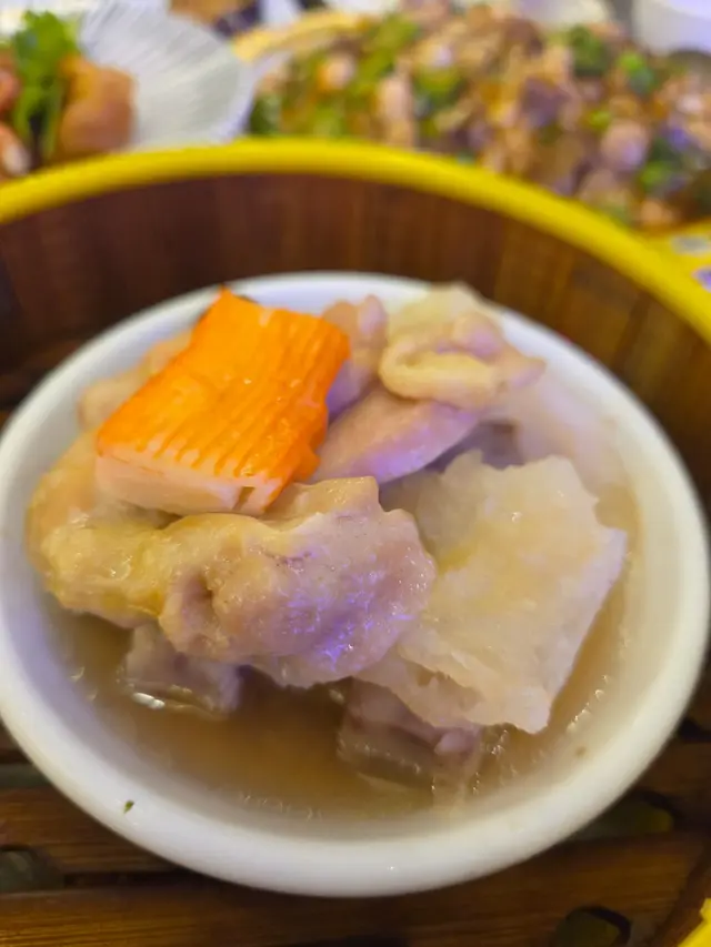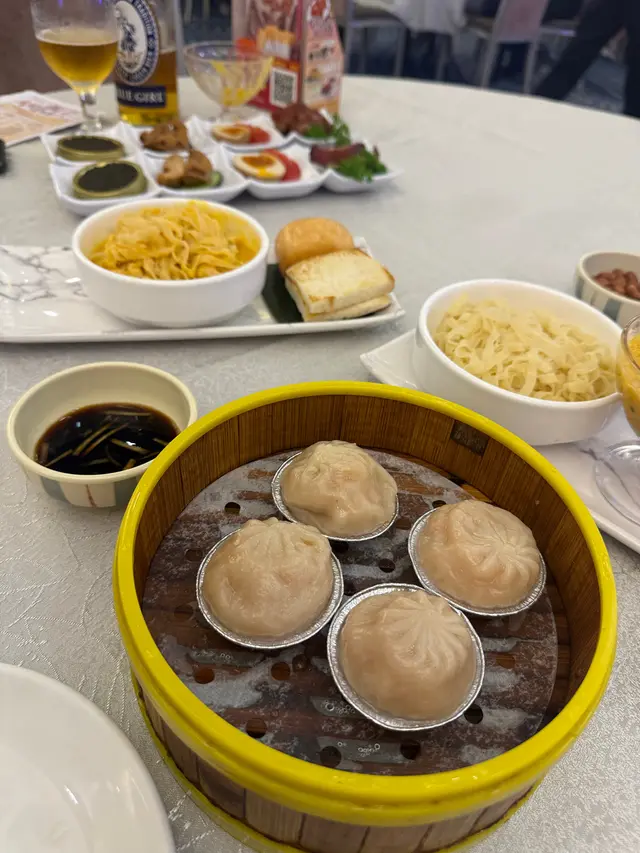今天一行四人來到石門的酒樓午餐。這裏的食客很多,座位充足,環境光猛,確實不錯。打開餐牌,原來食物的選擇也很多,其中也不乏特價點心。~韭皇鮮蝦腸($12.8)這個價錢吃到鮮蝦腸粉真是意想不到,二話不說,我便點了兩碟。雖然腸粉內的蝦仁份量不多,但幸好腸粉入口糯軟,豉油又足夠。~香菇腩片飯 ($8.8)又一超值特價盅飯,最愛是那粒粒分明的白飯。薄薄腩片肥瘦分明,但有點乾;幸好有小菇粒增潤。~點心孖寶 (32.8)*北菇棉花雞不錯的一個點心。*五榖粗糧糕入口軟糯,紅豆味濃,好吃!~點心組合 ($39.8)*蟹籽燒賣皇充實的一個點心。*櫻花蝦煎薄煎得有點乾,櫻花蝦份量不多,食味一般。這酒樓的點心售價實惠,食味也不錯,怪不得不乏捧塲客。…查看更多