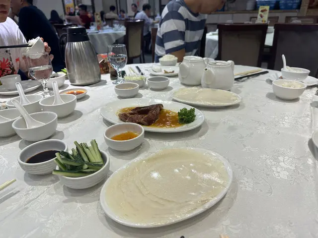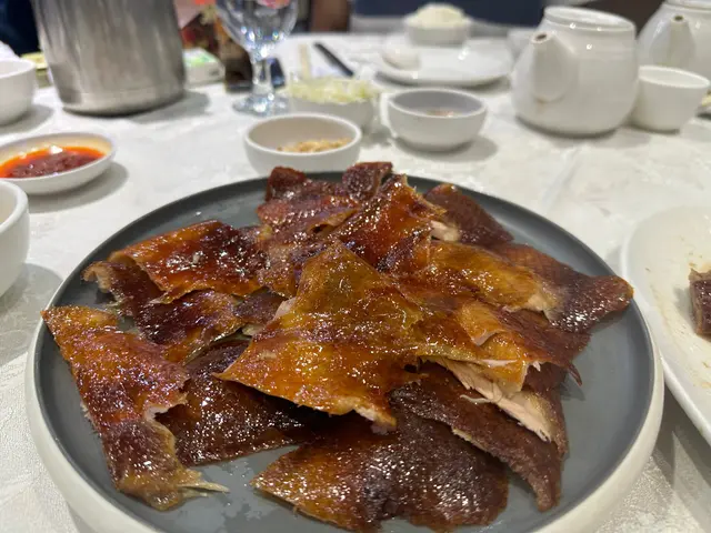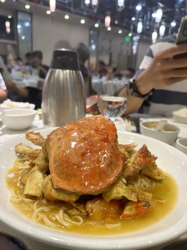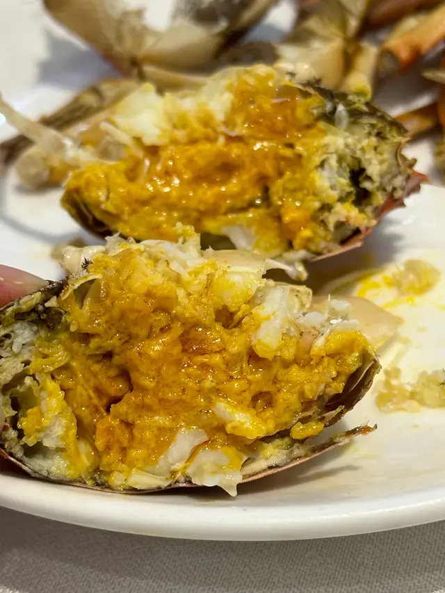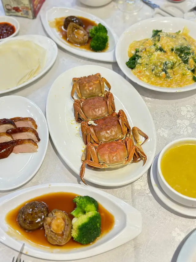 富臨酒家任食大閘蟹每人一份金湯燴燕窩、蟹粉扒豆苗、蠔皇鮑魚圖。一落單就有。行完鯉魚門,準備食晚餐,就見到呢間店舖2小時的大閘蟹放題。好吸引我哋呢種超喜歡食海鮮的人。除左金湯小米燴燕窩、蟹粉扒豆苗、蠔皇原隻鮑魚和回味欖角骨(只限定每人一份),其他都可以任食任飲。鮑魚軟硬適中,燕窩加入左些小米。我朋友覺得甜,而我則覺得咸。我們還點了片皮鴨,鴨皮脆口。大閘蟹有三款味道,分別是清蒸、油鹽焗和花雕蒸,我個人比較喜歡清蒸的大閘蟹,最是原汁原味;油鹽焗較咸香;而花雕蒸則有一陣陣酒香味。食完性寒的大閘蟹,當然要配上一壺薑茶驅寒和一碗糯米飯,糯米飯一碗的份量不是很多,所以不用擔心兩人食不完。.…查看更多
