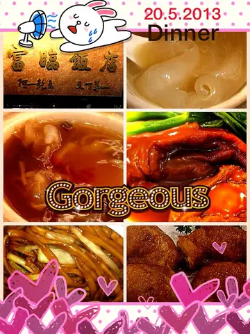 20-5-2013(一)是日晚上,约了他外出吃饭,选址在 富临饭店阿一鲍鱼。过往去山东及泰国旅行,也曾于当地的阿一饭店用过膳,也曾到过 I-square 的阿一海景饭店吃晚饭;反而没来过这儿,这次是我首次到来!过往对阿一旗下食肆有著良好的印象,所以是次都抱著期望去品尝,可是结果又不是预期的好!♬♭♪〜 我怕就怕失望,其余一切也不枉。。。 〜♬♭♪主要想说说其两道名菜。阿一鲍鱼鹅掌,店舖声称是廿八头吉鲍,其实我不太懂得去分辨。只知道鲍鱼一定有溏心才是上品货,把它切开后,只感觉其溏心程度不太理想,可能是煲不谂所致,囗感像吃年糕一样烟烟韧靱;鹅掌的质感很滑,够入味,唯略嫌它过于淋身。鲜蟹肉竹笙翅质感滑溜,啖啖翅有口感;唯味道过咸,猜估是金华火腿或调味盐下得太多所致。 ♬♭♪〜 所有代价,通通舍割!心血都流光。。。 〜♬♭♪一年内遇著两个相同的人,最终,同样事情的出现。我还是喜欢说清楚,总算有个交代啊!埋单共约 $4300。今天,没再 AA 制,因说清楚后,我想主动请客!此餐的味道合格有余,只是我期望过高而已。。。