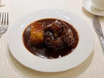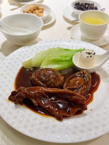 闺蜜身份证生日,当然要好好庆祝。阿一鲍鱼也是我很想一试的馆子,因此便决定在此为她庆祝。馆子的装修风格糅合现代与传统的中国风,最吸睛的是近门的提字和挂在各墙壁的字与画。馆子推出不少驰名的鲍鱼套餐,差异在于鲍鱼的大小,而我们选择的大概是入门的套餐。玫瑰单丛冷茶不在菜单之内,作用是让客人清口腔之用,玫瑰的香味芬芳,茶味淡淡的,口感清爽。套餐的头盘是高端奢华的鲟龙鱼子伴蛋白炒官燕,鲟龙鱼子小罐是店家找人特别为其所备,蛋白与官燕均是优质蛋白质,兼且炒得嫩滑,口感非常细腻,伴入鲟龙鱼子令官燕更加鲜香味美,整个菜式令人回味之余亦感觉滋养。部长介绍此汤是以猪肉煲成的汤底制作,特别之处在于整个汤也没有下盐调味,为的就是让食客能品尝食材的鲜甜与滋润。鲍鱼是重头戏,当然要细细品尝,38头的鲍鱼有点小,但切开溏心依然清晰可见,细嚼慢咽,风味的确与家常的焖煮鲍鱼有很大的分别,鹅掌亦焖得软糯入味,为免浪费掉鲍鱼浓厚鲜美的酱汁,随碟附有一小口白饭让食客自行享用。这里的酿鸡翼是吃过的最好的出品,酿鸡翼外型饱满,皮薄而脆,鸡翼的油脂完全被去掉了,内馅的鱼翅充满咸鲜香,边吃边感受这片刻的豪华。一向不太喜好焗响螺这菜式,然而这裹的出品也是比较有水准的,以响螺壳为盛器的菜品外型吸晴,响螺肉粒可见亦可尝,葡汁甜中带微咸,包裹着所有食材,让各样食材在口腔中发辉不同的口感。千里酱的味道近似海鲜酱,不是我的一杯茶。辽参虽然味淡,但个人而言,简单的调味,例如蚝油更合心意。每只水饺内有小指甲般大小的鹅肝粒,以鹅肝搭配鲜虾作为馅料大概是要升格整个主食的格调,喜欢鹅肝的食客应该会喜欢这主食,因为鹅肝的醇厚为菜品增添了色彩。万寿果炖雪耳是一道很滋润的甜品,由于套餐十分丰富,因此炖雪耳便显得不太吸引,一小件的杨枝甘露冻糕反倒不难清理。…查看更多
