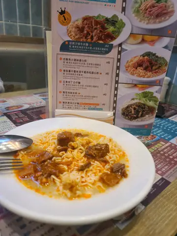 今日一早拎嘢去荃湾,完成后赶得切早餐时间,去咗呢间试下,之前见炮台山都有,应该吾差吧!我想试下呢间啲五香肉丁,虽则系罐头嘢,但吾系间间一样,有啲肥膏多过肉,味道怪怪,对于我呢啲吾好肥肉嘅人嚟讲吾太钟意,呢度五香肉丁都ok,吾系太多肥膏,味道几好,瘦肉硬少少好过肥肉食吾到浪费……唯一有点要留意,系餐牌相中五香肉丁系有几片菜,但我果碗没有