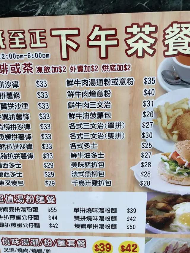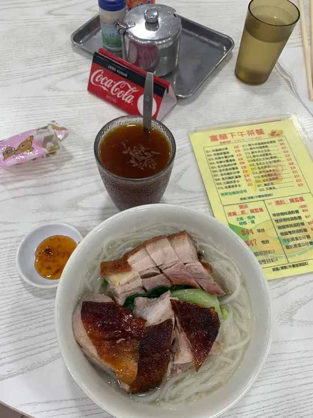 之前食過一次茶餐覺得都OK❗️今日咪再次光顧!有張下午茶餐牌!指住個燒味下午茶餐牌叫廋燒肉燒鴨瀨!熱檸茶濃啲!無耐張單放在枱上!即時望吓!見收$52!即時指住餐牌同個姐姐講「唔該,茶餐唔係$47咩⁉」️個姐姐即刻粗聲話「尼個系茶餐!你叫飯唔使茶餐嚟呀嘛」!我即時重複我嘅order系瀨粉!個姐姐大大聲話你講清楚啲嘛😡我同佢講你聴唔清楚可以問清楚啲!我唔明我已經指住個下午茶餐牌落order而且肯定叫「廋燒肉燒鴨瀨」仲有嘜唔清楚