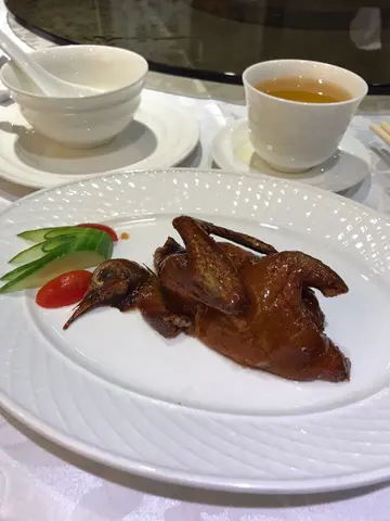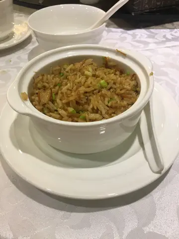一行七人团购左这𥚃的八道菜晚餐。红烧官燕,高汤香浓,燕窝不少,加了少少腿蓉,不错。吉品鲍鹅掌,鲍鱼黏刀有咬口,个汁调得浓度刚好,但鹅掌炆的时间不够。百花辽参,兰度爽口,虾胶弹牙,个汁比较清。脆皮乳鸽半只,炸得好香口,但冇乜肉。蒜子上汤苋菜,苋菜嫩口,个汤好清好好味。瑶柱炒饭,份量大,瑶柱也不少,炒得好干身,好惹味。旦白杏仁茶,吾太甜,淡淡杏仁香。脆皮龟苓膏马蹄条,细细条,一口一条,普普通通。整体来说是不错,待应服务也不赖,但男仕可能不够饱。