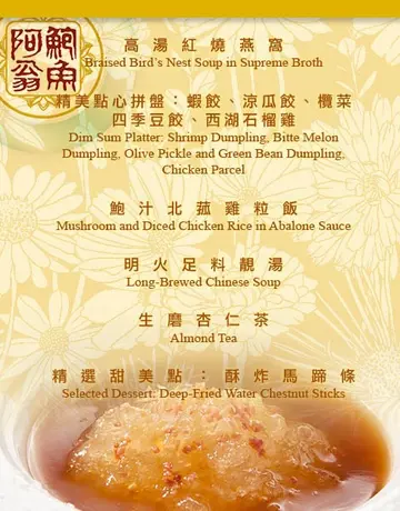 此店驰名中外的阿翁鲍鱼是店内的招牌菜,酒家设楼上座位,共可容纳约120人。