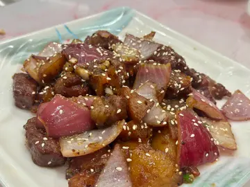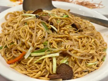 煎肠粉有好多虾米,煎得非常之香。加了豉油增添了不少风味,如果点甜酱及麻酱,味道更加好。凉瓜煎鱼饼很有弹性,凉瓜少少苦,鱼饼不会太咸。叉烧肥瘦均匀,味道甜美。炒手大大粒,香口,不会太辣,肉质有弹性。蔬菜有菇类及其他配菜,还有汤汁,整体唔错。叉烧包很松软,叉烧少肥肉,甜甜的整体味道唔错。伊面很大碟,炒得很香,很干身。