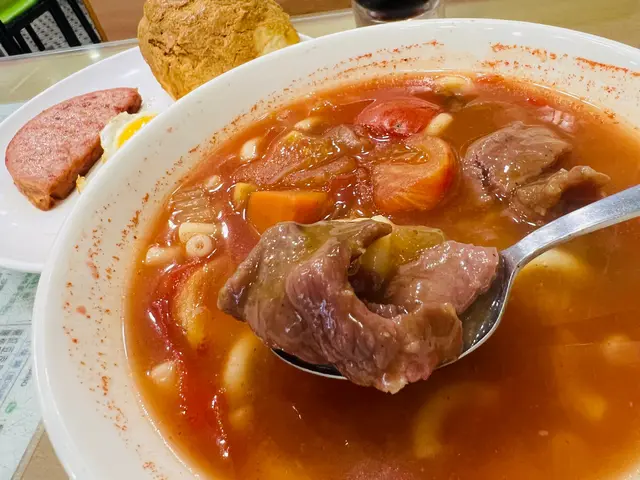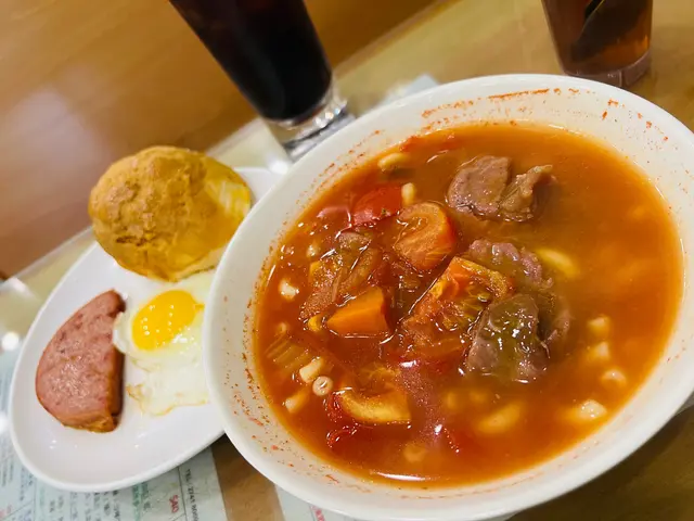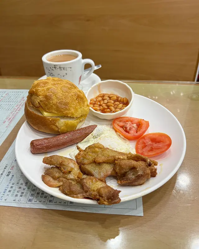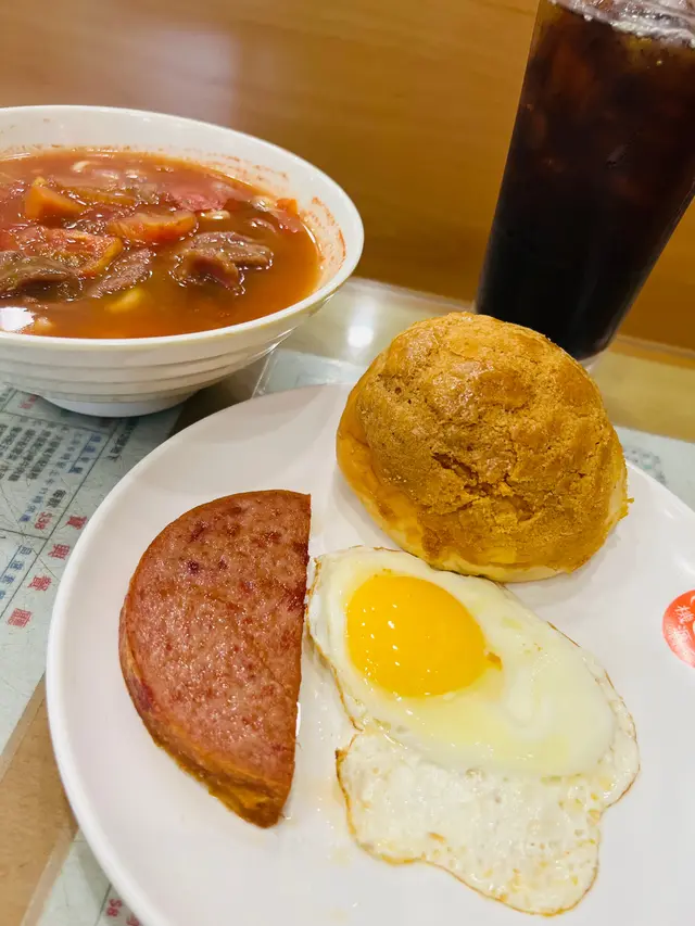 好耐之前嚟呢度附近刮痧,試過呢一間茶餐廳,就係鍾意佢多配搭。隔咗好幾年,突然間唔知點解睇到佢個餐原來可以轉羅宋湯,之前好似未食過咁樣嘅配搭。放假就專程出嚟,試吓個羅宋湯底。但係我又想食沙嗲牛肉搞到啲沙嗲牛肉浸咗落去啲羅宋湯。雖然浸咗落去,但係佢啲沙嗲味醃得好入味,所以冇咗啲醬都好過沙嗲牛肉都幾出色。反而個羅宋湯底我就覺得佢偏甜咗少少。唔係好食不過如果可以少啲甜就好啦。唔知係咪落得太多茄汁。其實已經食咗晏,出嚟都係準備同啲鄰居食晚飯,但係就係忍唔住五點幾都要食呢個餐。雖然五點幾,但係仲有菠蘿包配,同埋個菠蘿包咬完之後仲識彈返起證明都係新鮮嘅,同埋都係加幾蚊就有個大大個菠蘿包食出邊麵包舖都買唔到。如果食唔晒打包都抵。厚切餐肉相當感動,係屋企自己係唔會食呢啲咁邪惡嘅食物。今次醒起呢間店,要記低做呢區下午茶之選。…查看更多