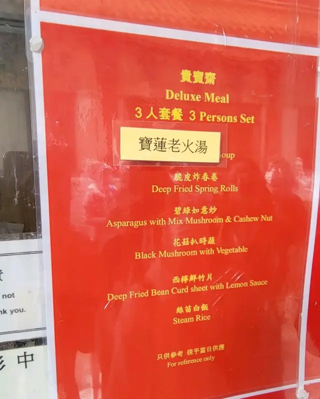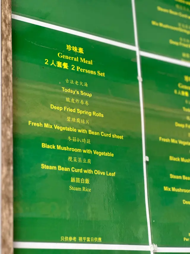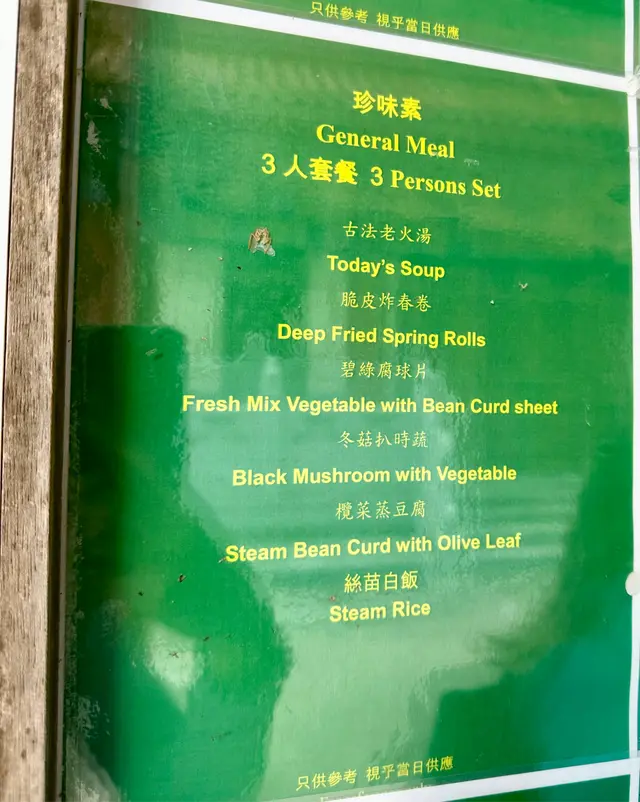 第一次黎到大嶼山寳蓮寺食齋宴,步行上大佛前會經過購票處,我今次選擇價錢最貴的,每人$150,到場食用場地舒適,今次齊宴有七餸一湯,湯和白飯是任添的,齋宴食物都是一般的檸檬雞、芋頭魚、豆腐冬姑蔬菜等等,例湯是菜乾湯( 傳說幾年都唔會有煲湯一次,今次真係好好彩)。食物味道味精不多偏清淡,不過勝在食材新鮮。特別推介有檸檬雞,味道醒神開胃,炸豆腐亦是甜甜酸酸味道很好,另外炸春卷非常香脆可口, 最後推介是冬菇,因為非常厚肉口感十足,炆得非常軟滑。整體坐得舒適,服務員欣勤,欣賞食物不太重味精,亦食到新鮮和原味,感覺良好。…查看更多