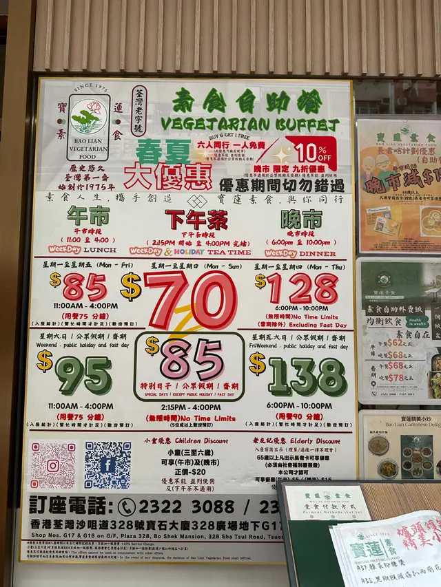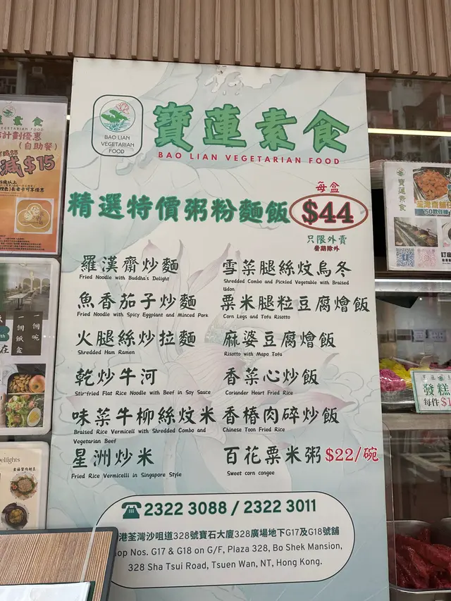 寶蓮素食 (荃湾) 网址: https://s.openrice.com/QrLS02zK5W0 地址: 香港荃灣沙咀道328號寶石大廈地下G17-G18號舖 电话: +852 23223088