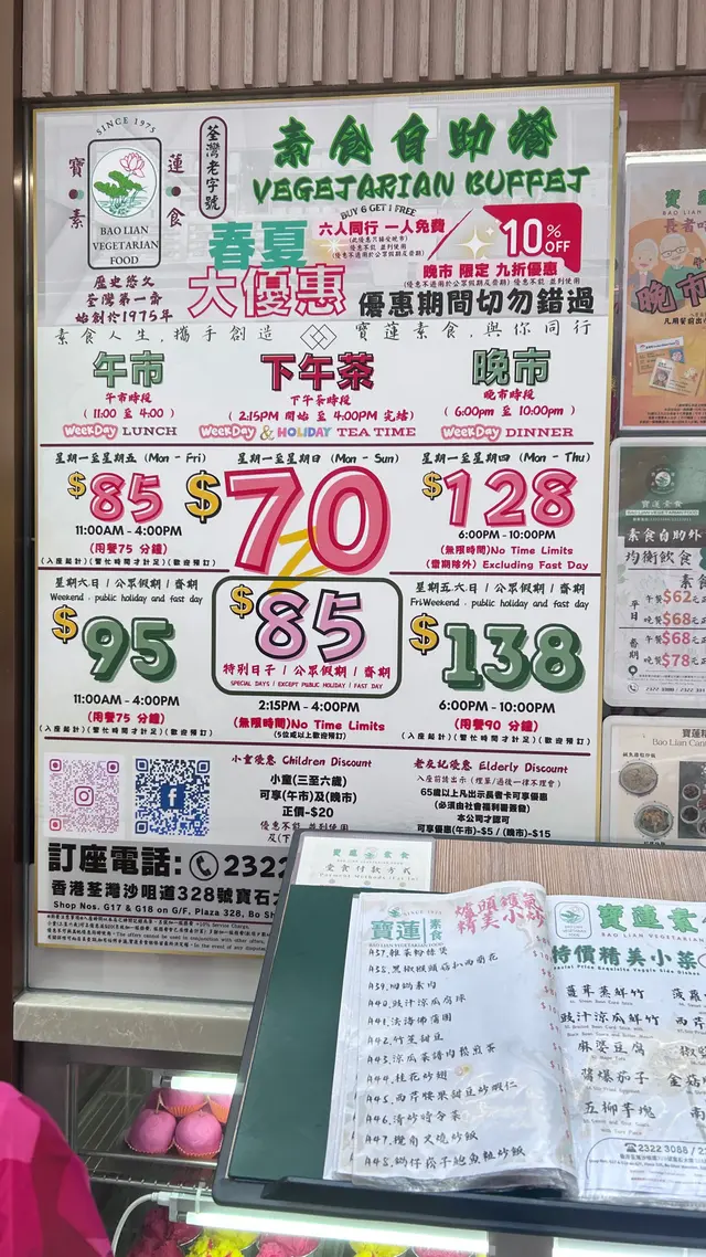 《寶蓮素食》可以說是素食自助餐的始祖。許多年前我一直對荃灣眾安街的這一家素食店的認識,除了食粵式傳統齋菜之外,就是他們的午市放題。如今,《寶蓮素食》,搬了出大馬路 (沙咀道),把原先剔紙仔的放題素食改成真正的自助餐。週末的其中一天,我同太太二人,就於下午茶時段來到,來一餐吃到飽。先付款,後入座,現在的《寶蓮素食》已經同一般的素食自助餐沒太大分別。不過,《寶蓮素食》始終是一做做傳統粵式齋菜的餐館。所以,自助餐的食物選擇,好多都好啱胃口。單是眼前的炒飯同炒麵,炒河粉同炒腸粉。已經令我垂涎三尺。最開心的,就是這兒不是以煎炸食品為主,也不是什麼東西都是芋頭、薯仔、蕃薯,粥粉麵等等吃一、兩件就會飽死你的東西。而且,甜點,沙律,凍食前茶的選擇都多羅羅,真的照顧到不同飲食所需的人士。我同太太都分了好幾 round 來取食。來過多次舊版本的《寶蓮素食》,我最喜歡食的,就是他們的齋鹵味了。此外,煎堆,咸水角,芋角這炸點三寶,也是令人感開心的。而當日,我更愛上他們的南乳炆蓮藕。第二碟,主要吃的是炒麵,炒河粉,腸炒,涼瓜同繼續吃齋鹵味。而這也是我去傳統粵式齋舖食飯時,最喜歡吃的東西。之後,是甜品時間,但,真正的主角其實是錦鹵雲吞。錦鹵雲吞白脆,更可以說是酥香,加酸甜汁來吃,是咸點,也是甜點。這錦鹵雲吞,每一次炸起出場,就立即被大家掃空了,很不容易才拿到兩件。我只拿了半碗素碗仔翅,因為實在吃得太飽了。這碗仔翅,最多的配料是木耳,味道雖然沒比街邊的精彩,但也夠香,口感豐富。當然,也真的有爽爽口的素在內啦。加點醋,可口。這雖是下午茶,但食物選擇幾乎等同午餐、晚餐。非常豐富的素食自助餐,既好食,又吃得飽。滿意兼滿分。…查看更多